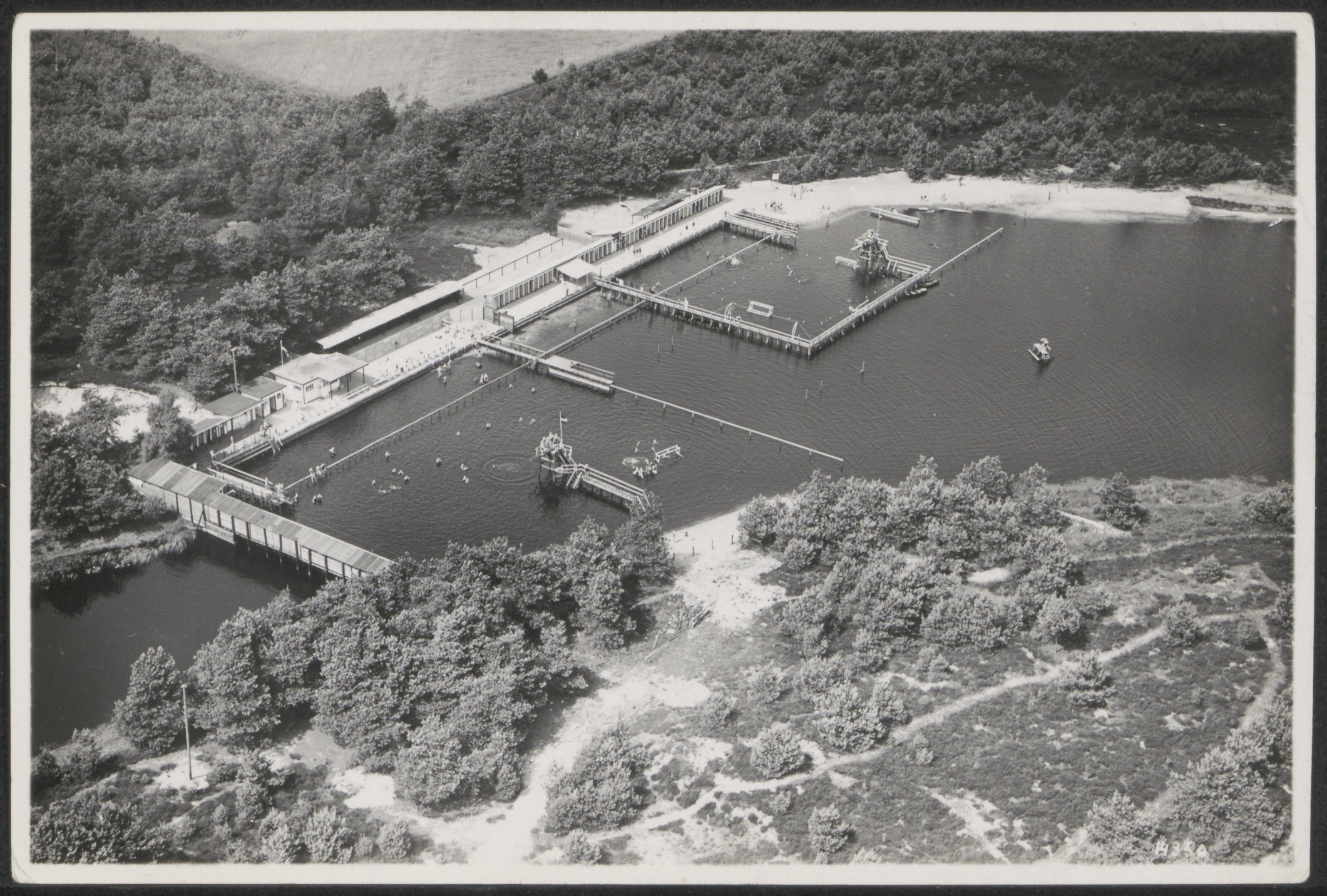 - Luchtfoto van natuurbad Het Baksche Ven (in het Baksven) te Tilburg.