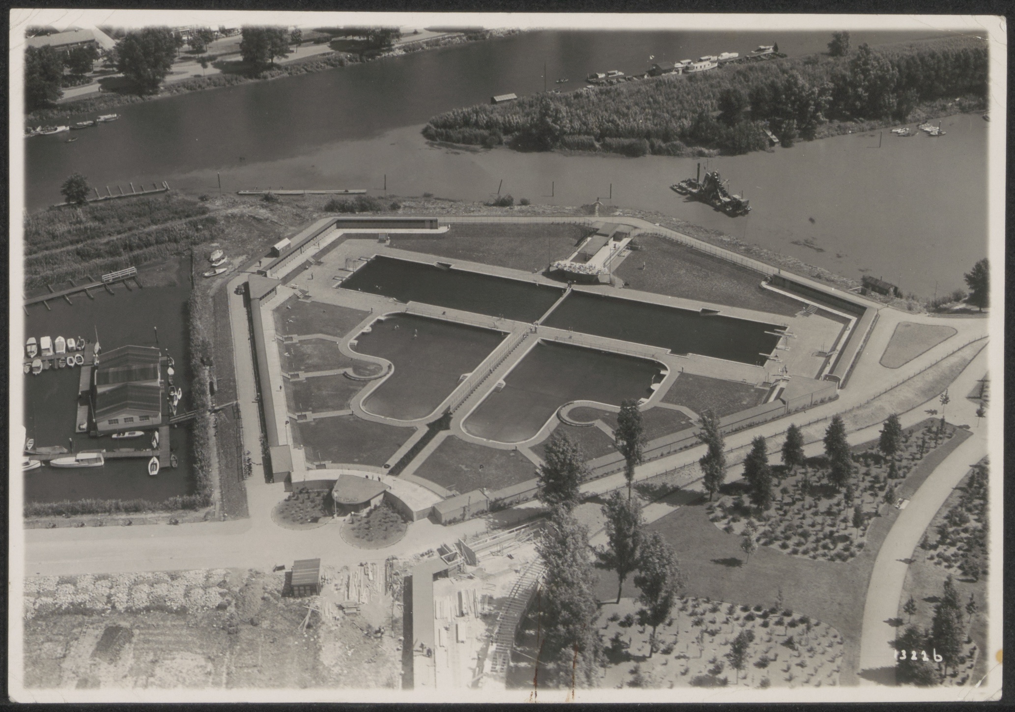 Luchtfoto van het Wantijbad, ontwerp van A.J. Argelo.
