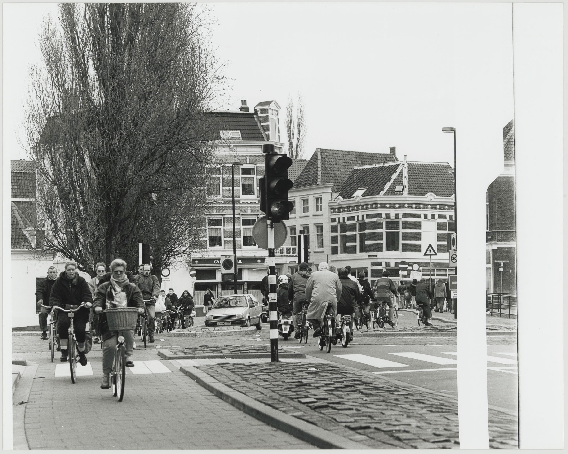 - Verkeer op de Spuiweg (voorgrond) en de Spuidam. Op de achtergrond het Spuiplein, de Grote Spuistraat en Elfhuizen.