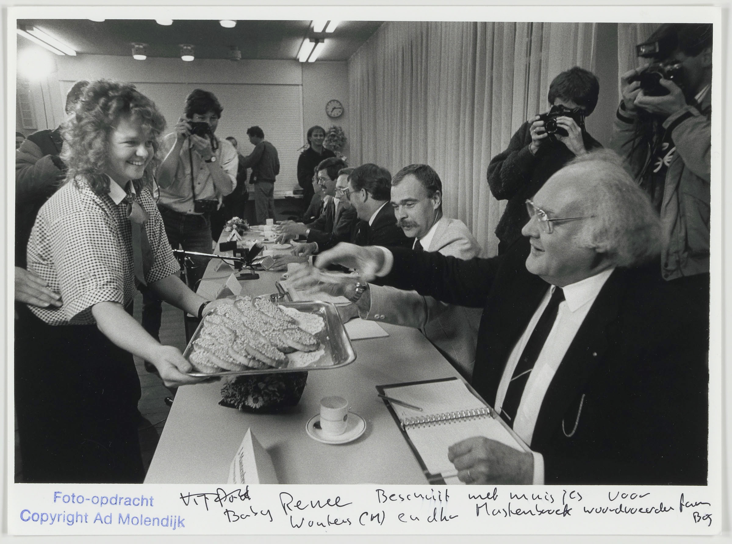 Beschuit met muisjes in het Merwedeziekenhuis bij de terugkeer van de ontvoerde baby Renee.