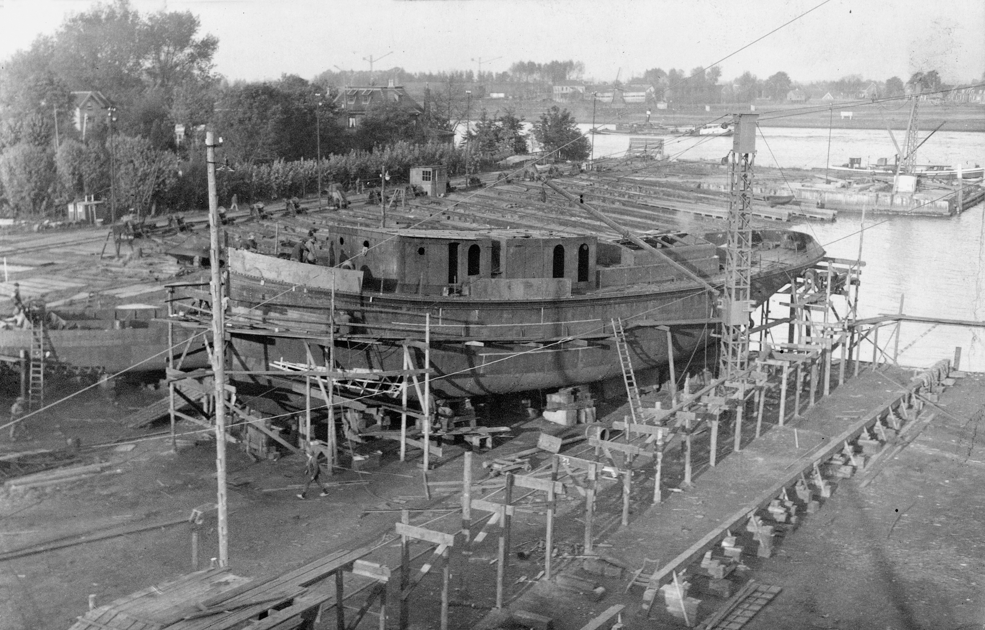 referentie: NL-HaNA, Scheepswerf Jonker & Stans, 3.21.31, inv.nr 16: Blauwdrukken van de sleepboot "ST CROISE" nr. 219 met o.a. fundatie, werkplan, zoetwatertank, kolenranden, brugdek, roer- en achtersteven, werkplan grootspant. 1929
