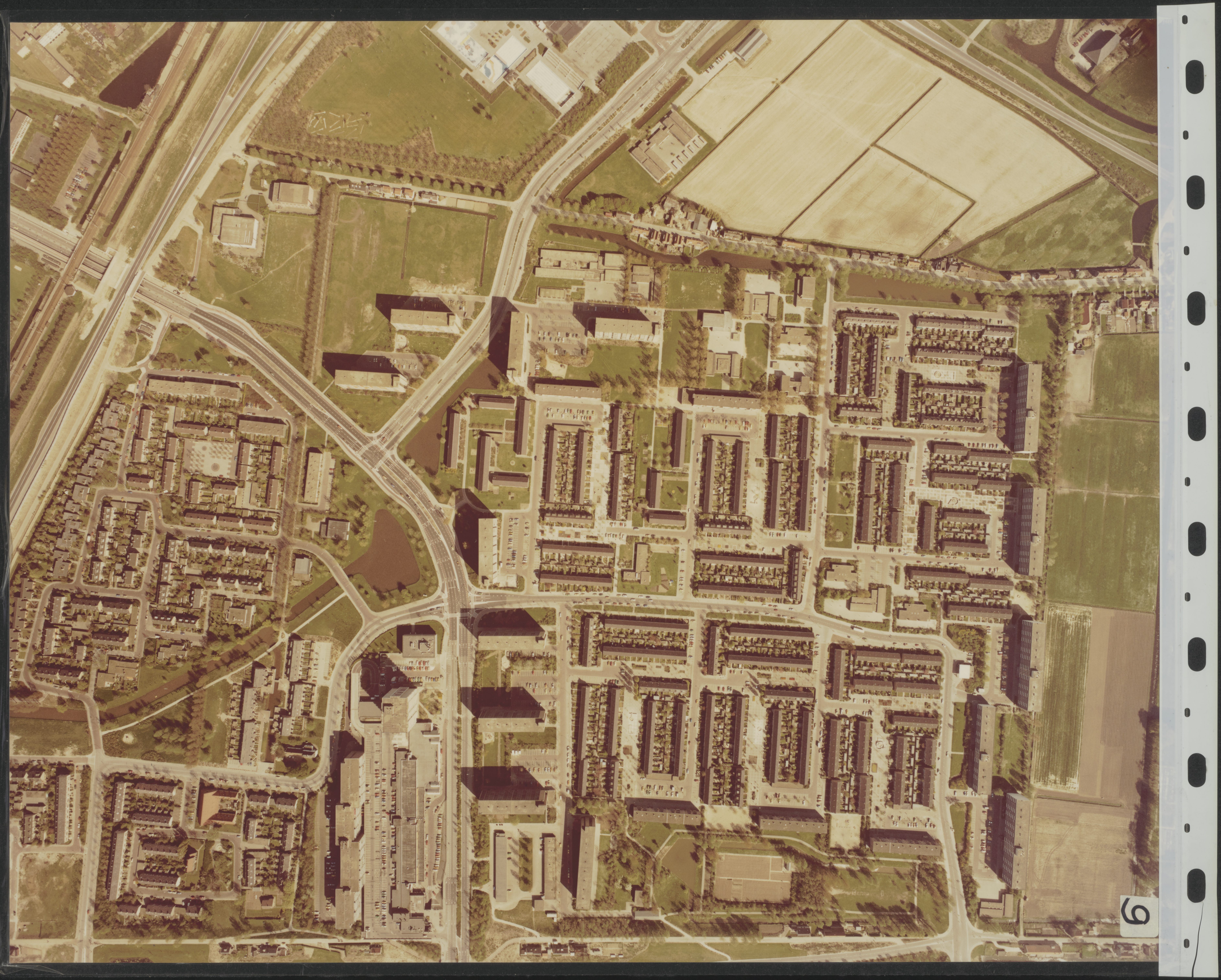 Luchtfoto van Sterrenburg. Linksboven de spoorbaan naar Breda naast de Rondweg. …