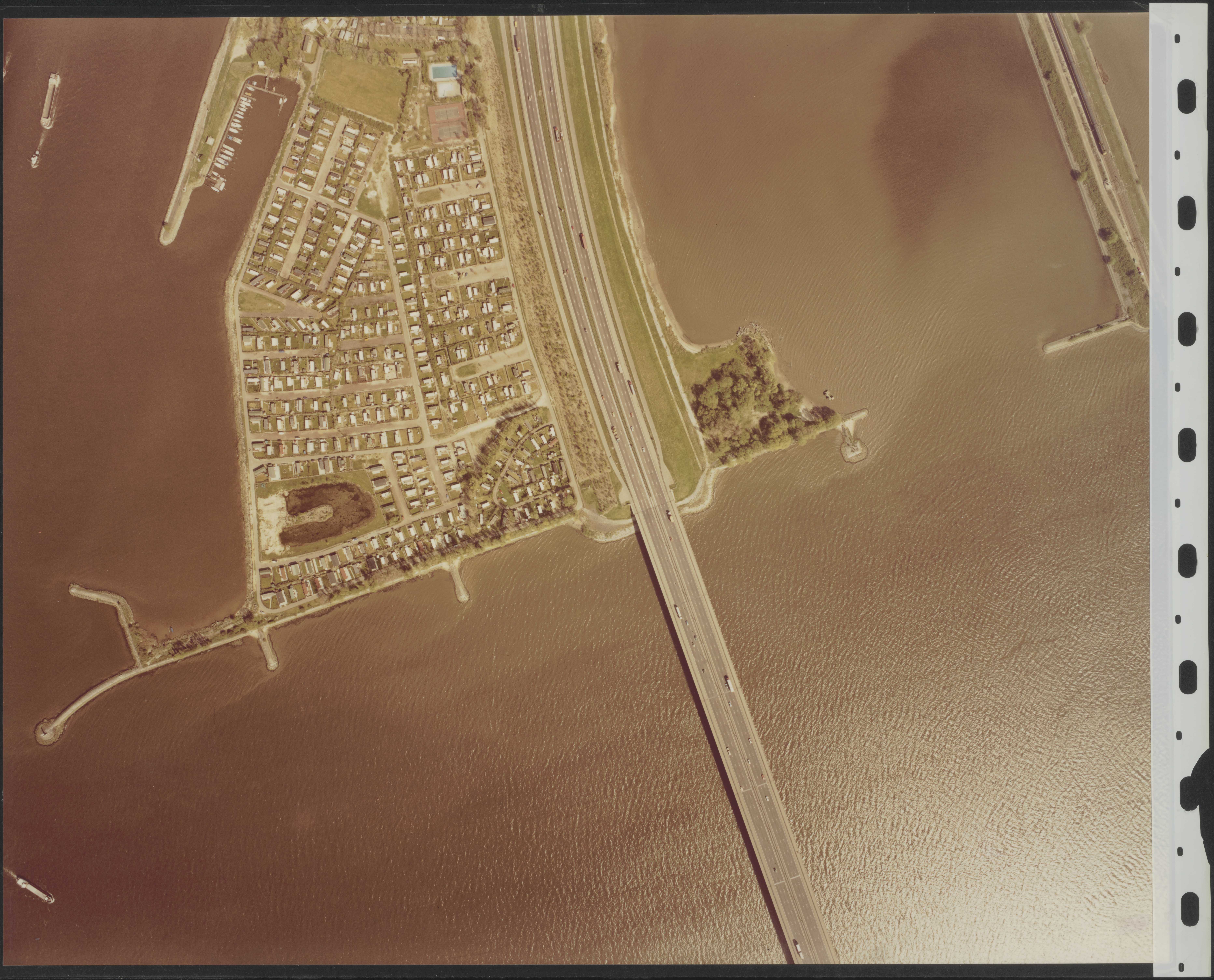 Luchtfoto van de Moerdijkbrug over het Hollandsch Diep. Links de Dordtsche Kil.