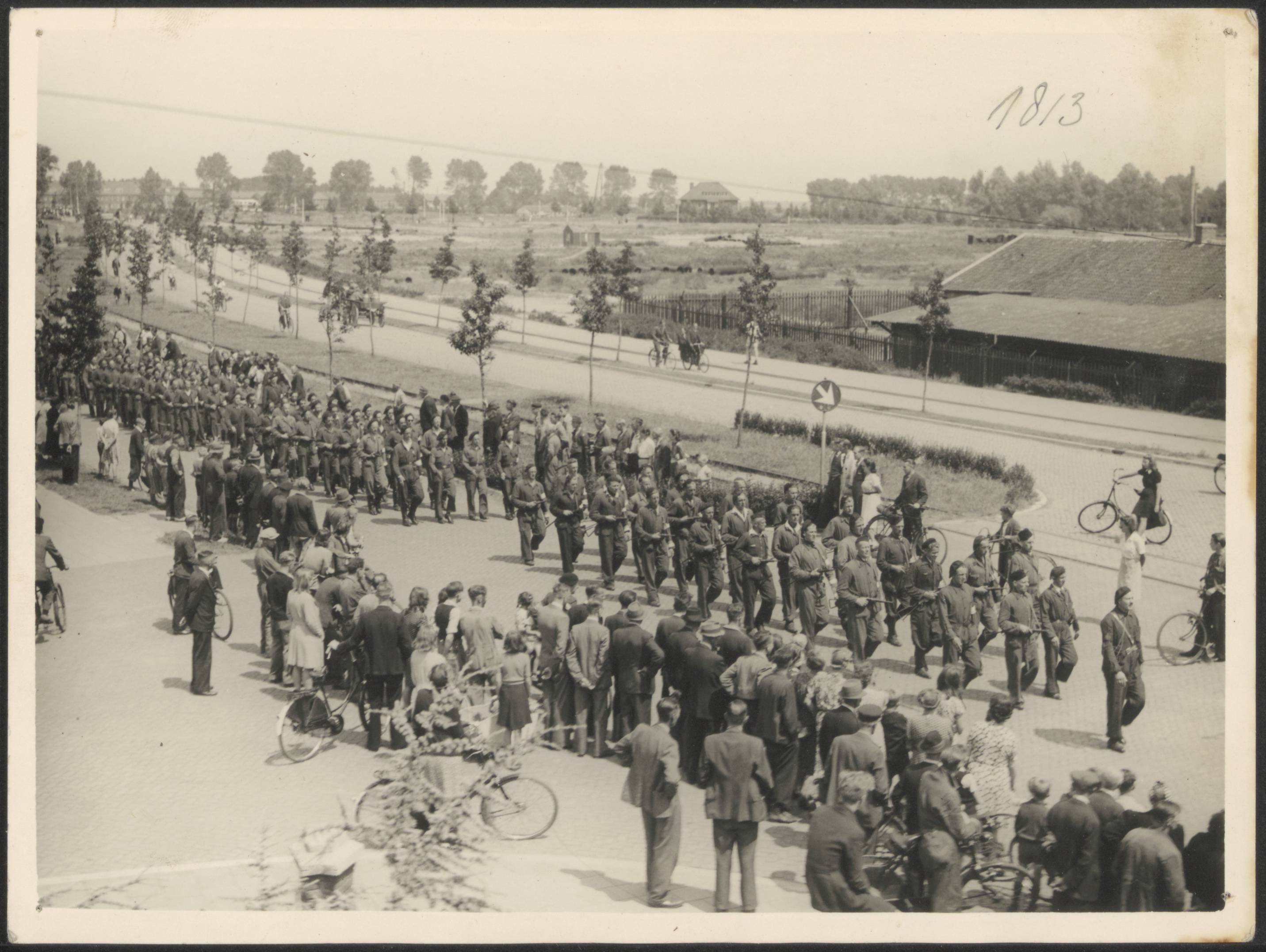 Oranjelaan richting Prins Hendrikbrug. Kruizing met de Noordendijk. Rails Lipstreintje. Zie ook 552_329405