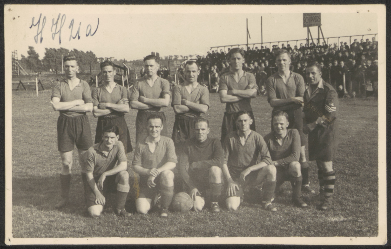 Engels voetbalelftal r.b.a.f.t. (the royal british artillery football team) op het DFC-veld aan de Markettenweg.