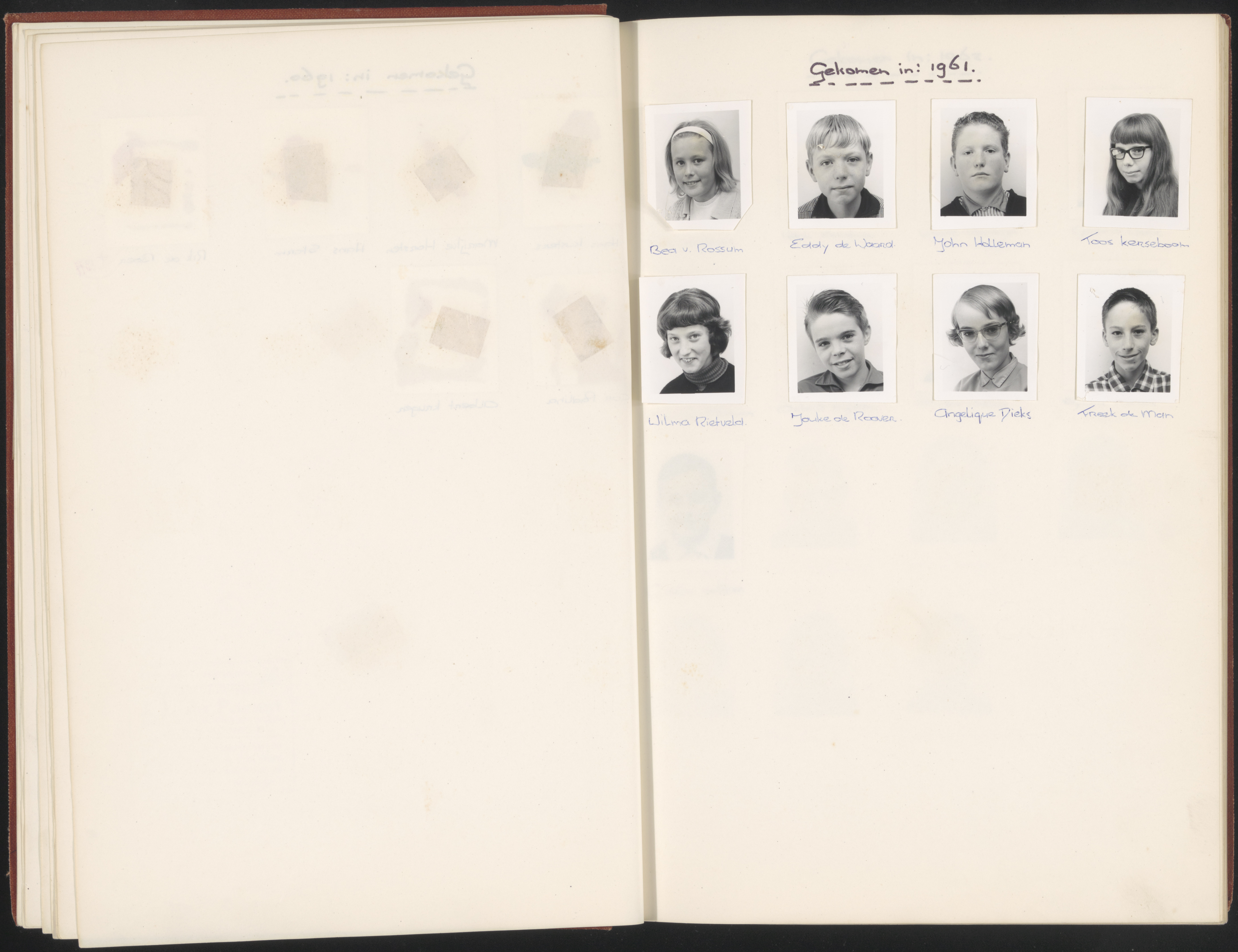 - Portretten van leerlingen van de Dordtse Buitenschool aan de Vrieseweg: Bea van Rossum, Eddy de Waard, John Holleman, Toos Kerseboom, Wilma Rietveld, Jouke de Roover, Angelique Dieks, Freek de Man.