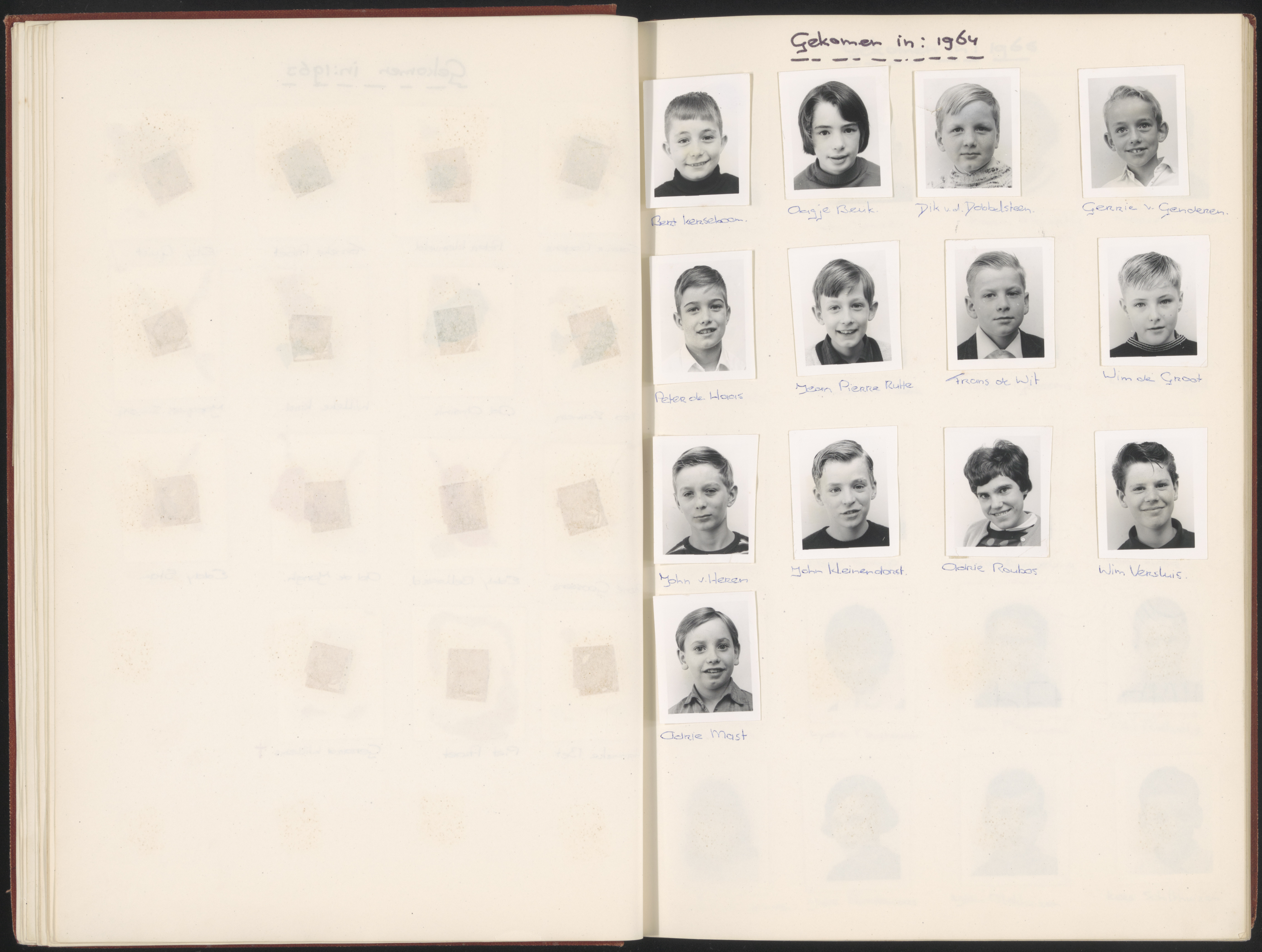 (album Dordtsche Buitenschool) Gekomen in 1964: Bert Kerseboom, Aagje Beuk, Dik v.d. Dobbelsteen, Gerrie van Genderen, Peter de Haas, Jean Pierre Rutte, Frans de Wit, Wim de Groot, John van Heren, John Kleinendorst, Adrie Roubos, Wim Versluis, Adrie Mast;