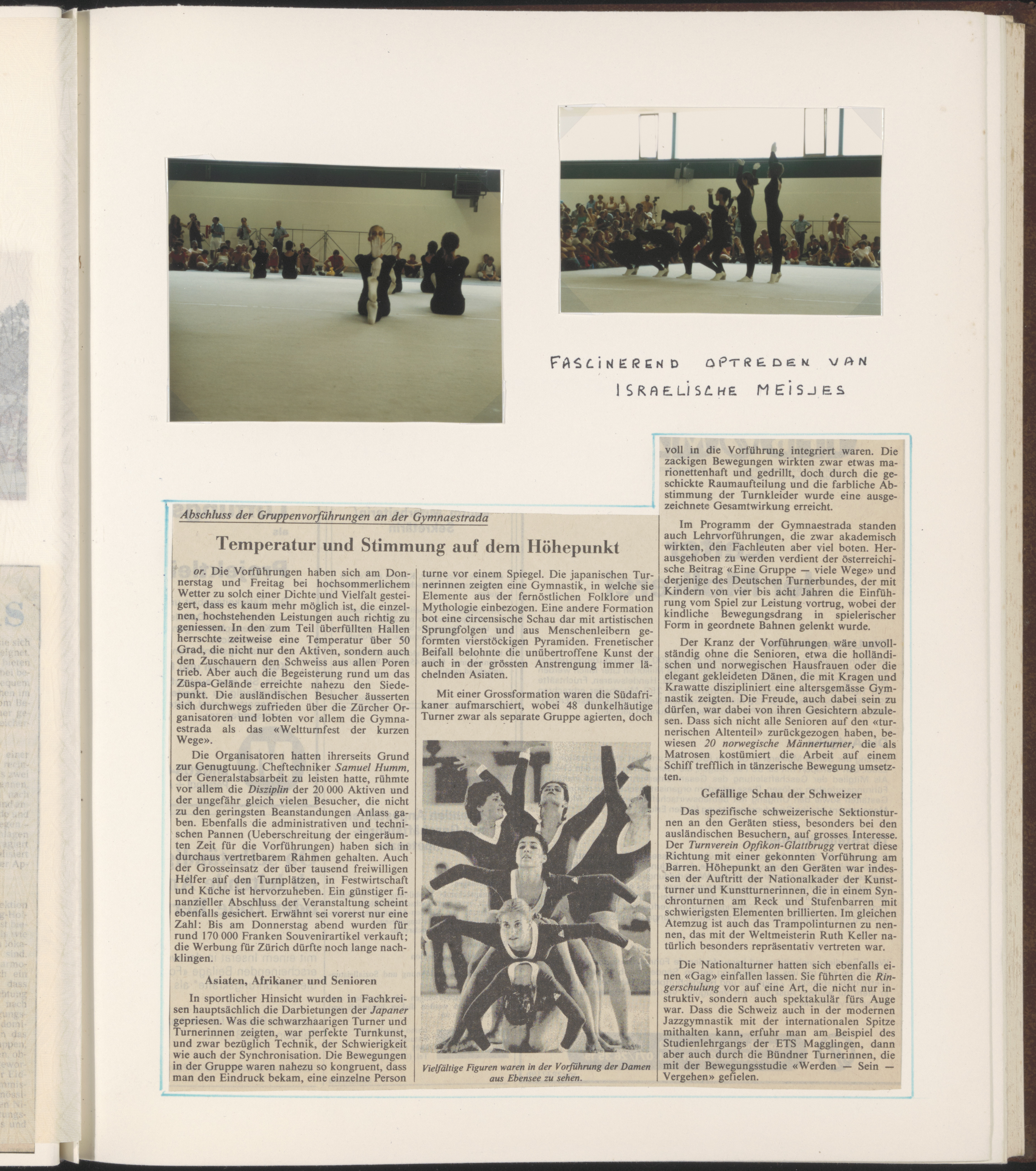 - Bijdrage van Israël aan de gymnastrada in Zürich en een krantenverslag over dit festijn.
