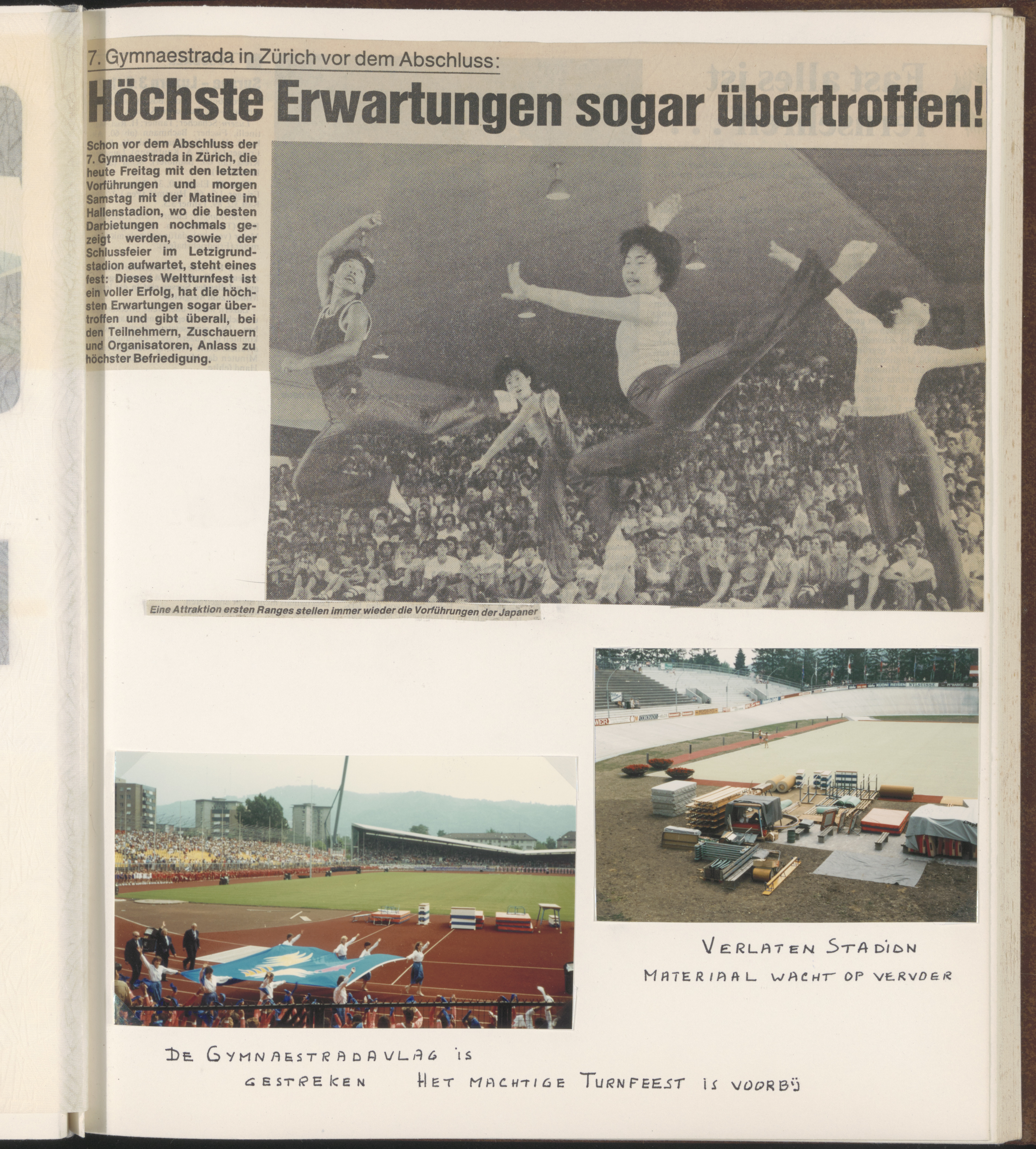 dagbladen / kranten gymnastiekuitvoeringen pers stadions