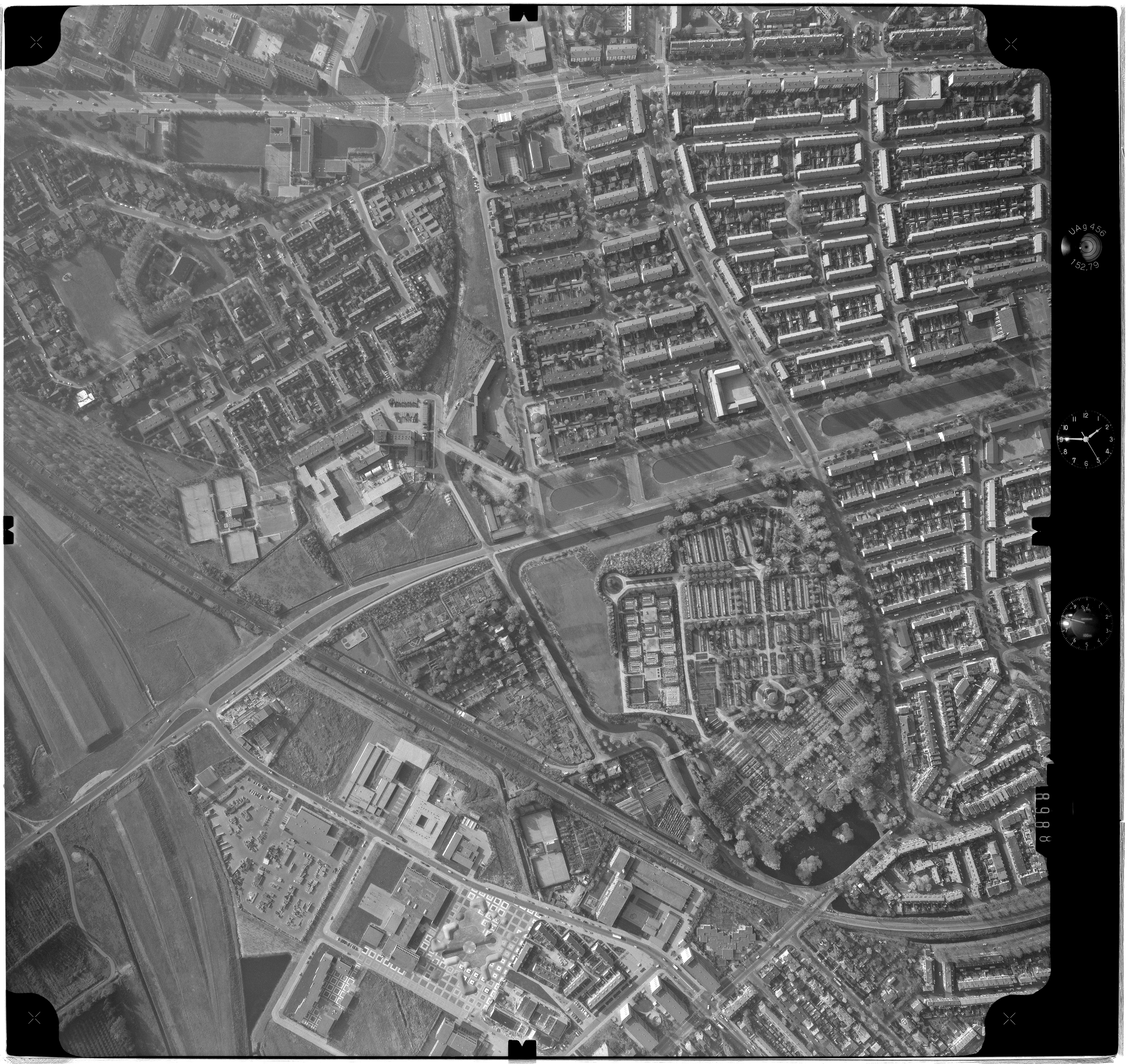 Midden van links naar rechts is de Nassauweg.Mid onder de begraafplaats.Rechts onder Leerpark Boven Hugo van Gijnweg-Krispijnseweg in Dordrecht 1976