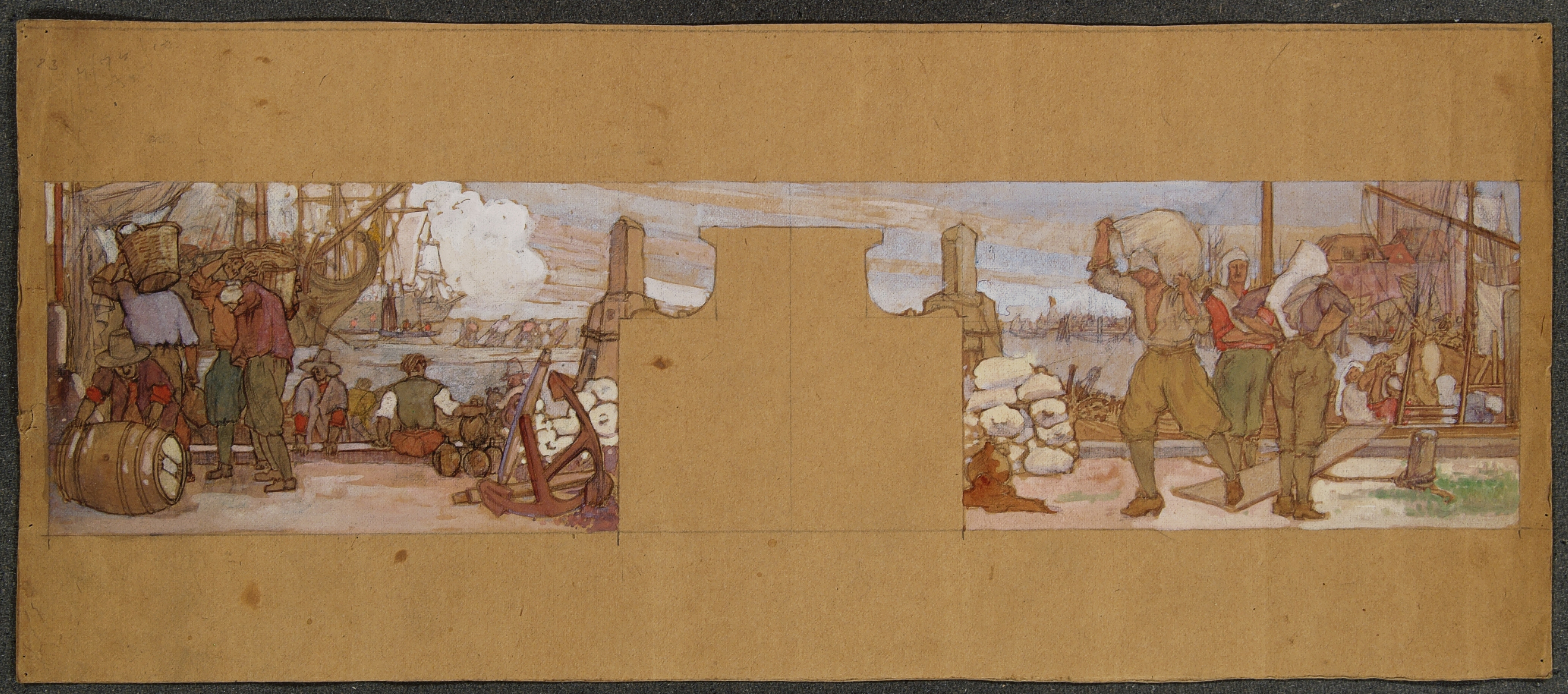 - Schets van de wandversiering van de trouwzaal in het stadhuis.