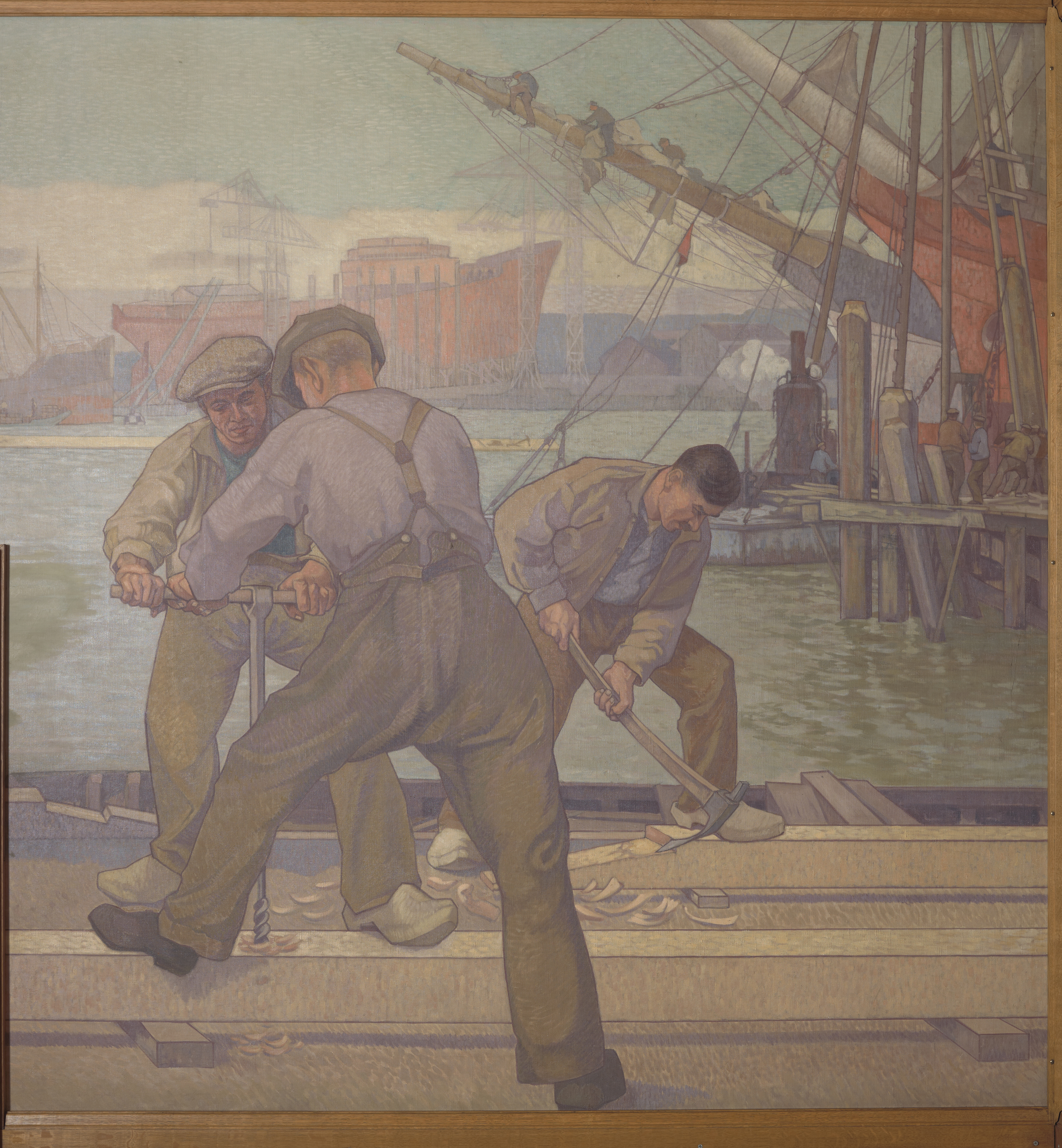 Wandschildering in de Kennedyzaal van het stadhuis.