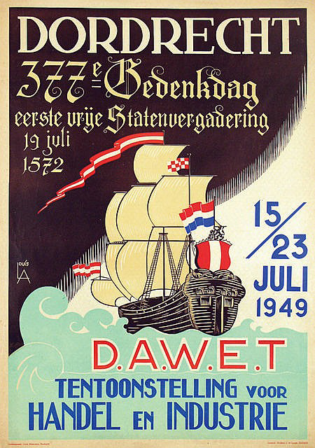 - Affiche door reclametekenaar Louis Akkermans voor de herdenking van de eerste vrije Statenvergadering en voor de DAWET-tentoonstelling.