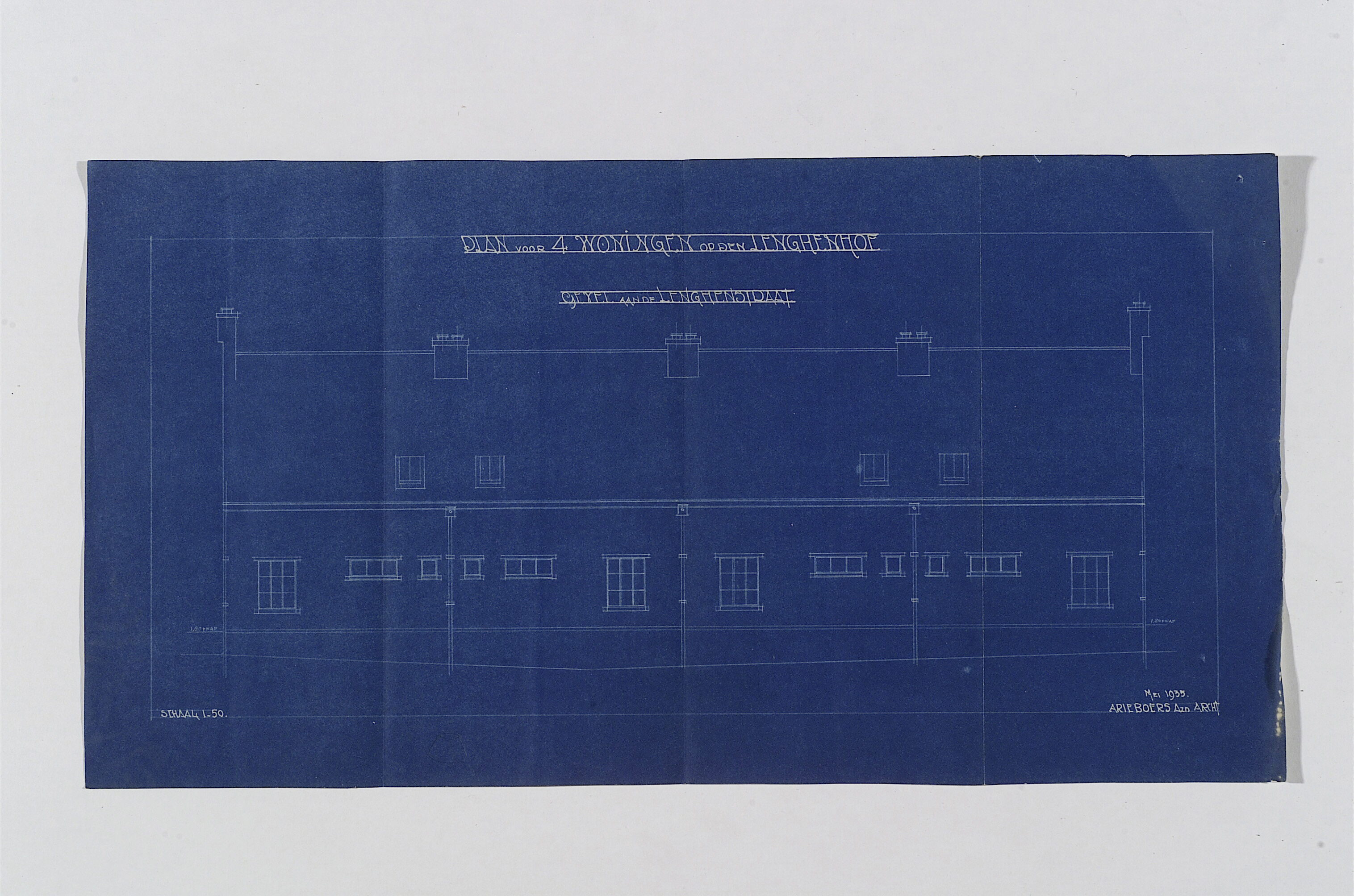 Bouwtekening voor 4 woningen op de Lenghenhof door architect Arie Boers.