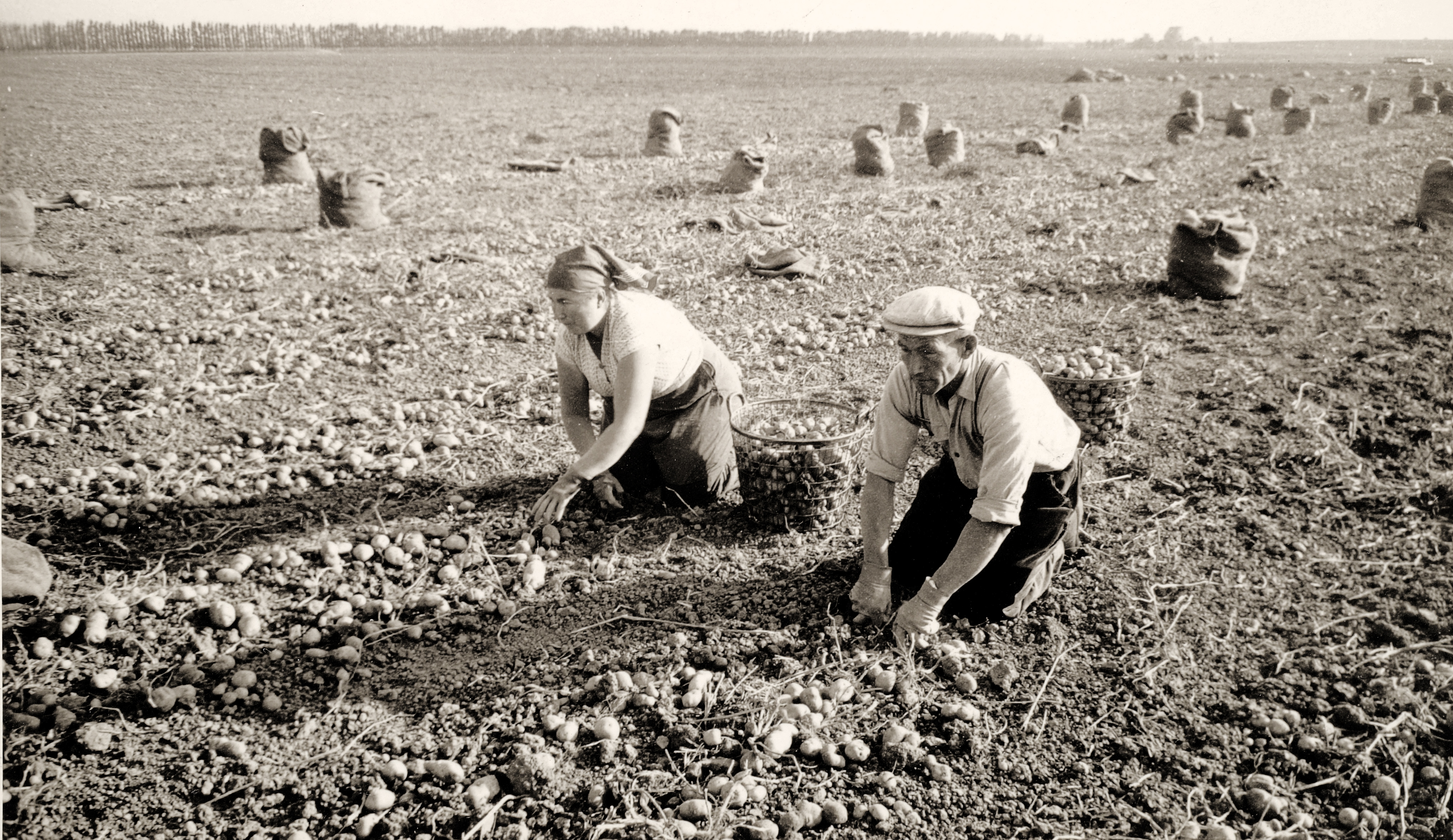 Aardappels rooien op landerijen in de Ambachtsheerlijkheid Cromstrijen.
