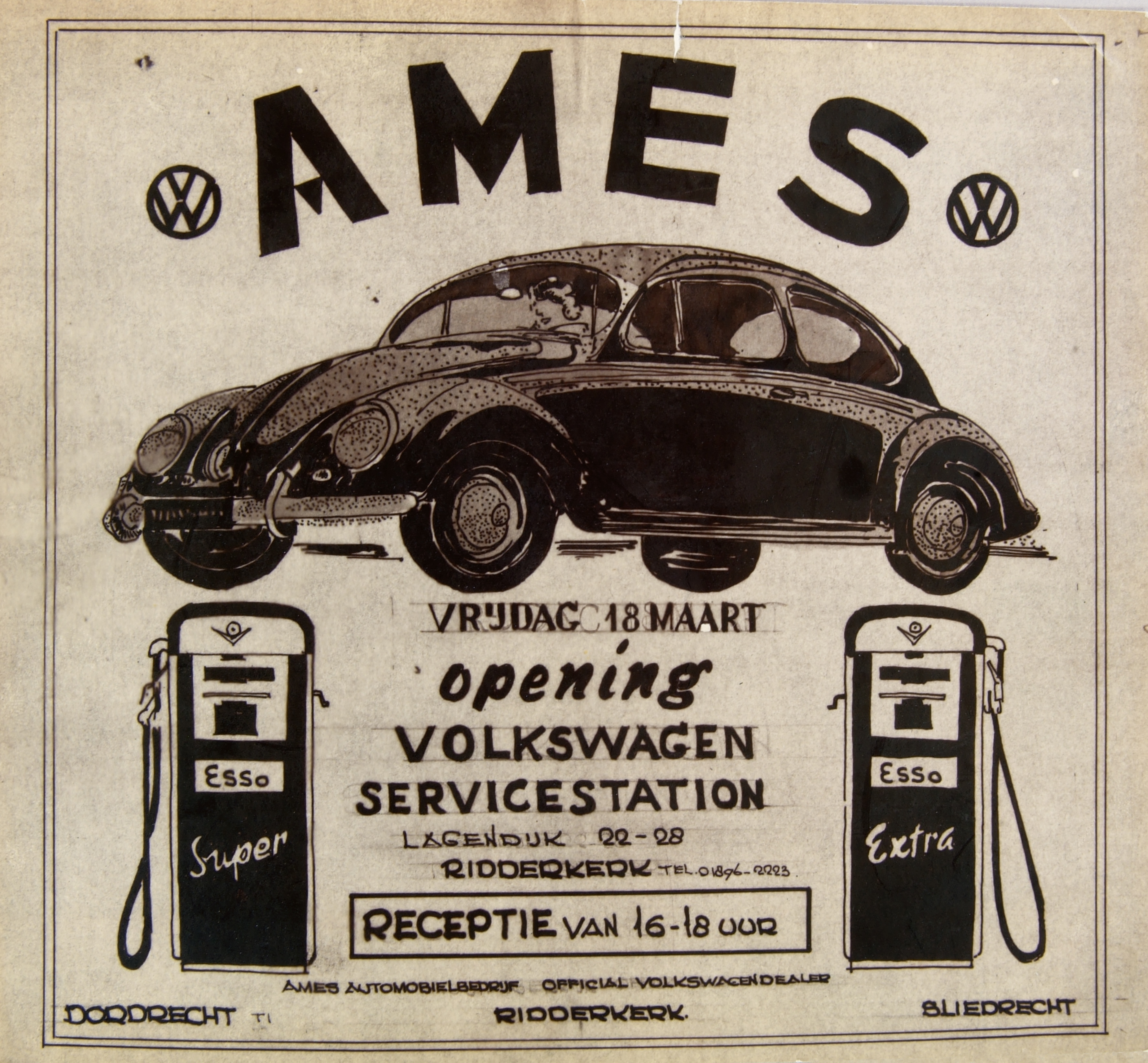 Affiche ter gelegenheid van de opening van garage Ames aan de Lagendijk in Ridderkerk.