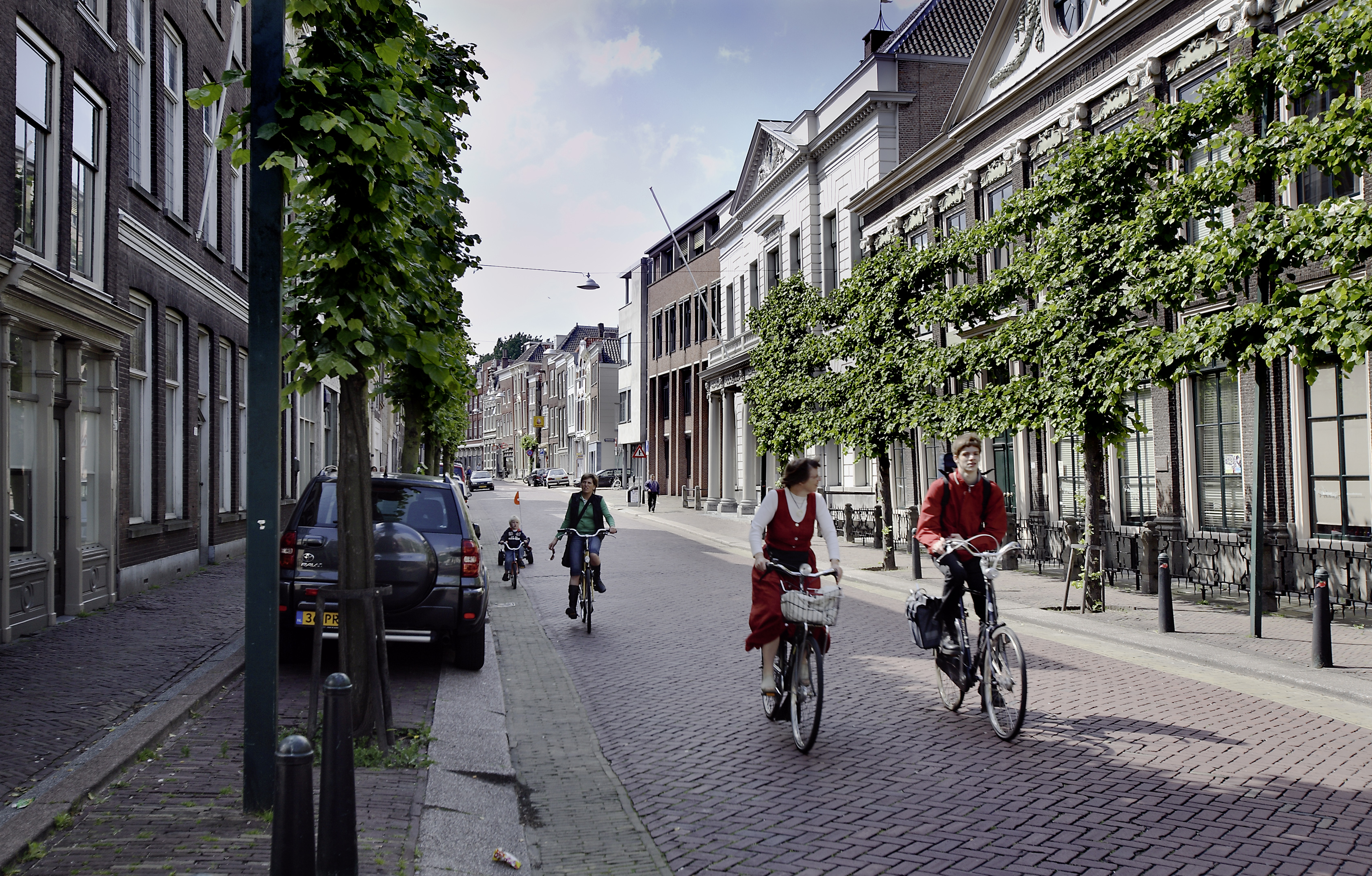 - auto's fietsers gerechtsgebouwen lantaarns / straatverlichting