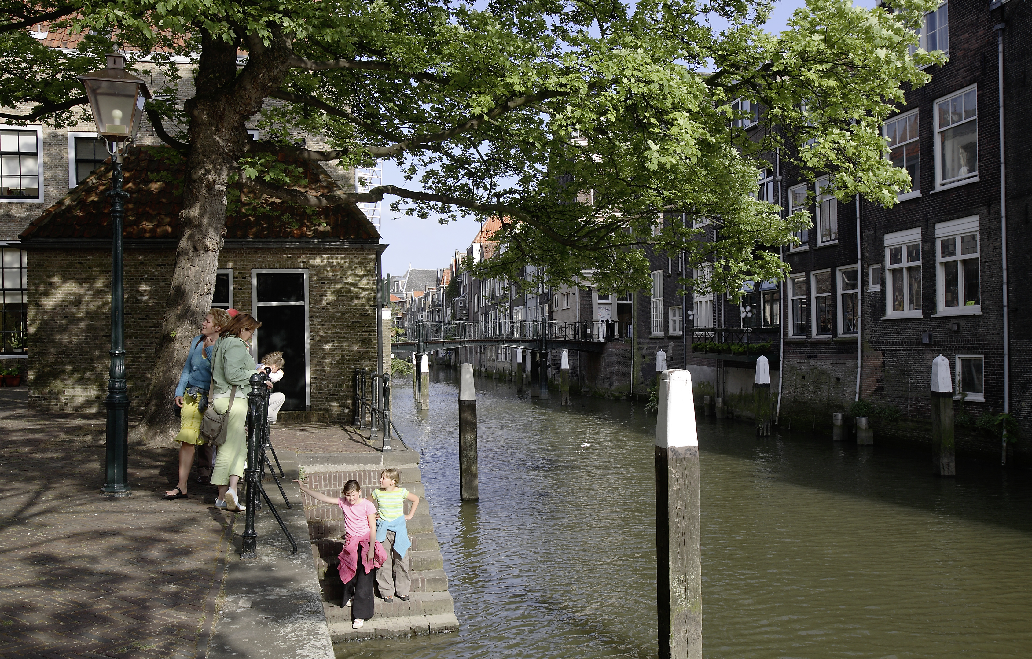 De Voorstraatshaven vanaf de Pottenkade naar de Perlserbrug. Rechts de Voorstraat.