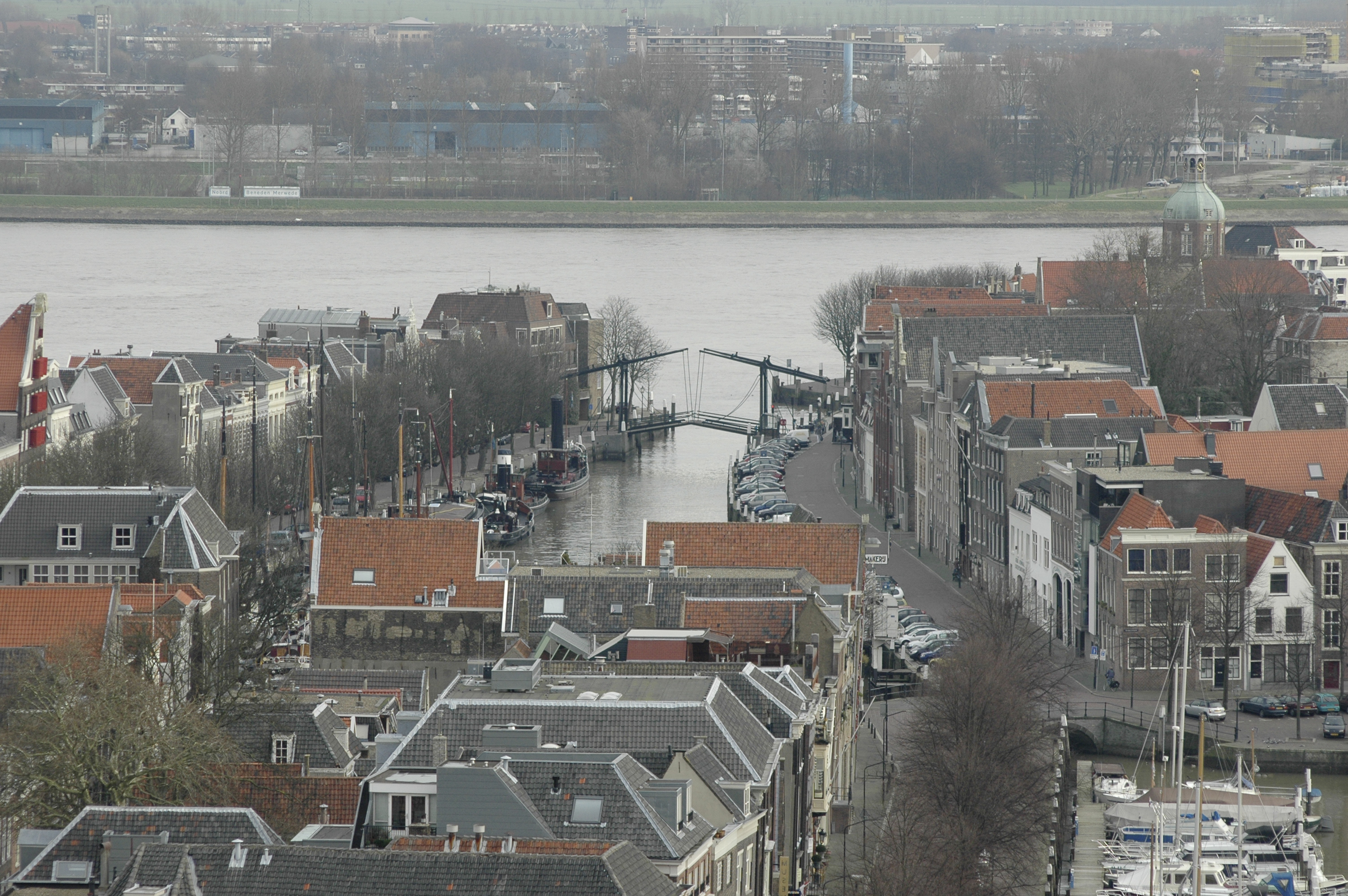 - Panorama vanaf de Grotekerkstoren richting Wolwevershaven. Op de voorgrond de Nieuwe Haven.