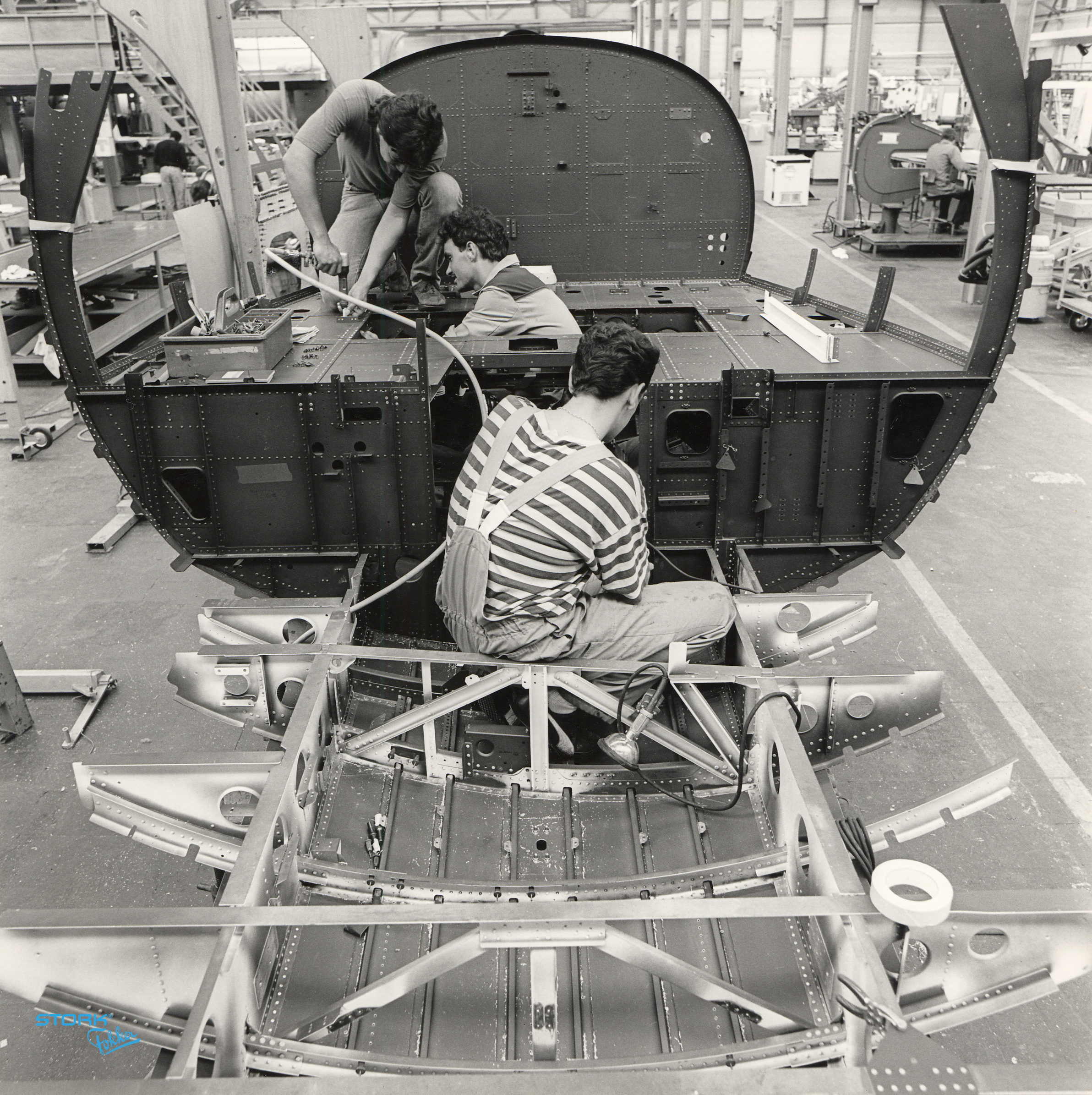 - fabriekshallen personeel / werknemers vliegtuigbouw