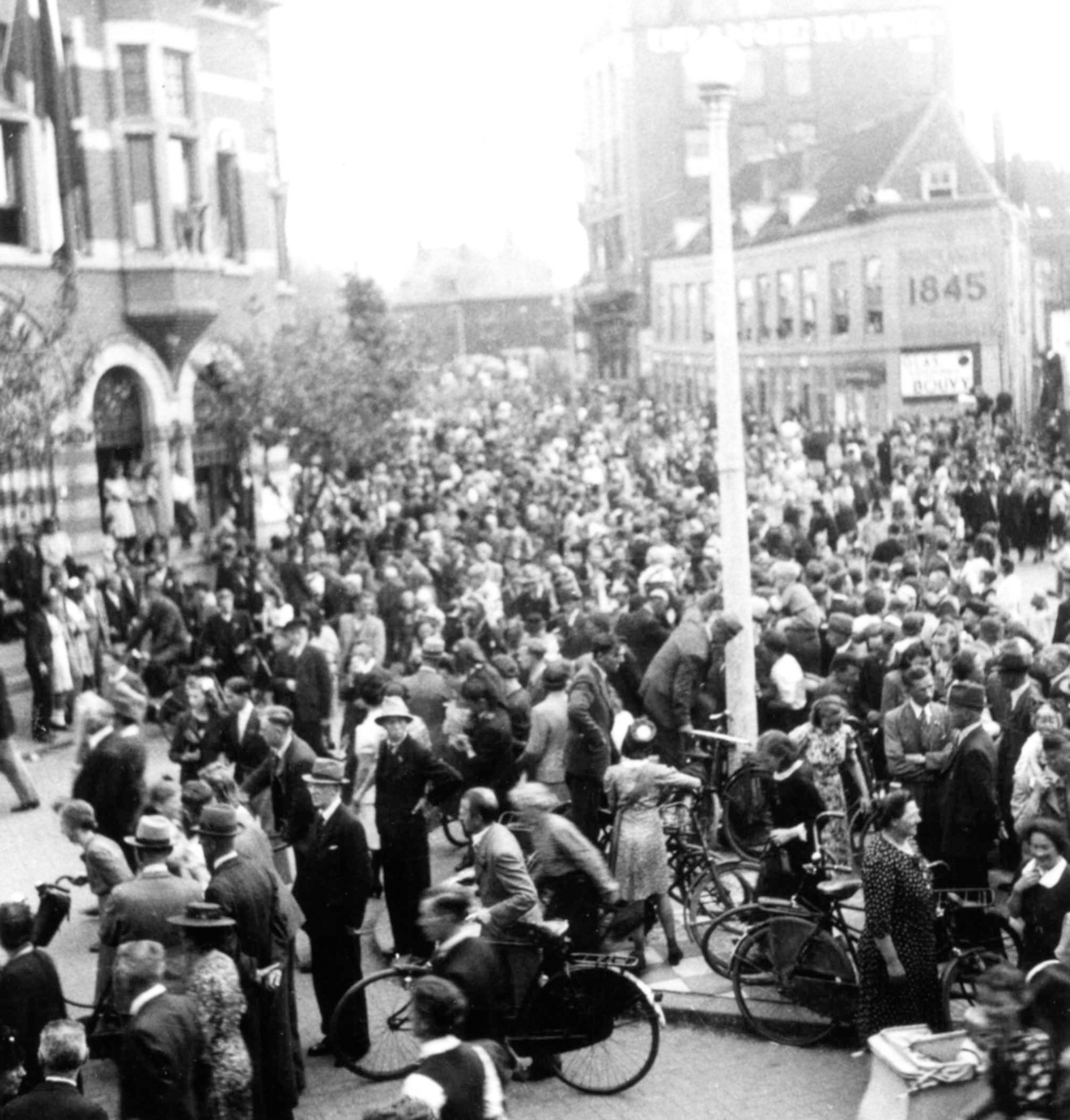 - bankgebouwen bevrijding feestelijkheden publiek / toeschouwers