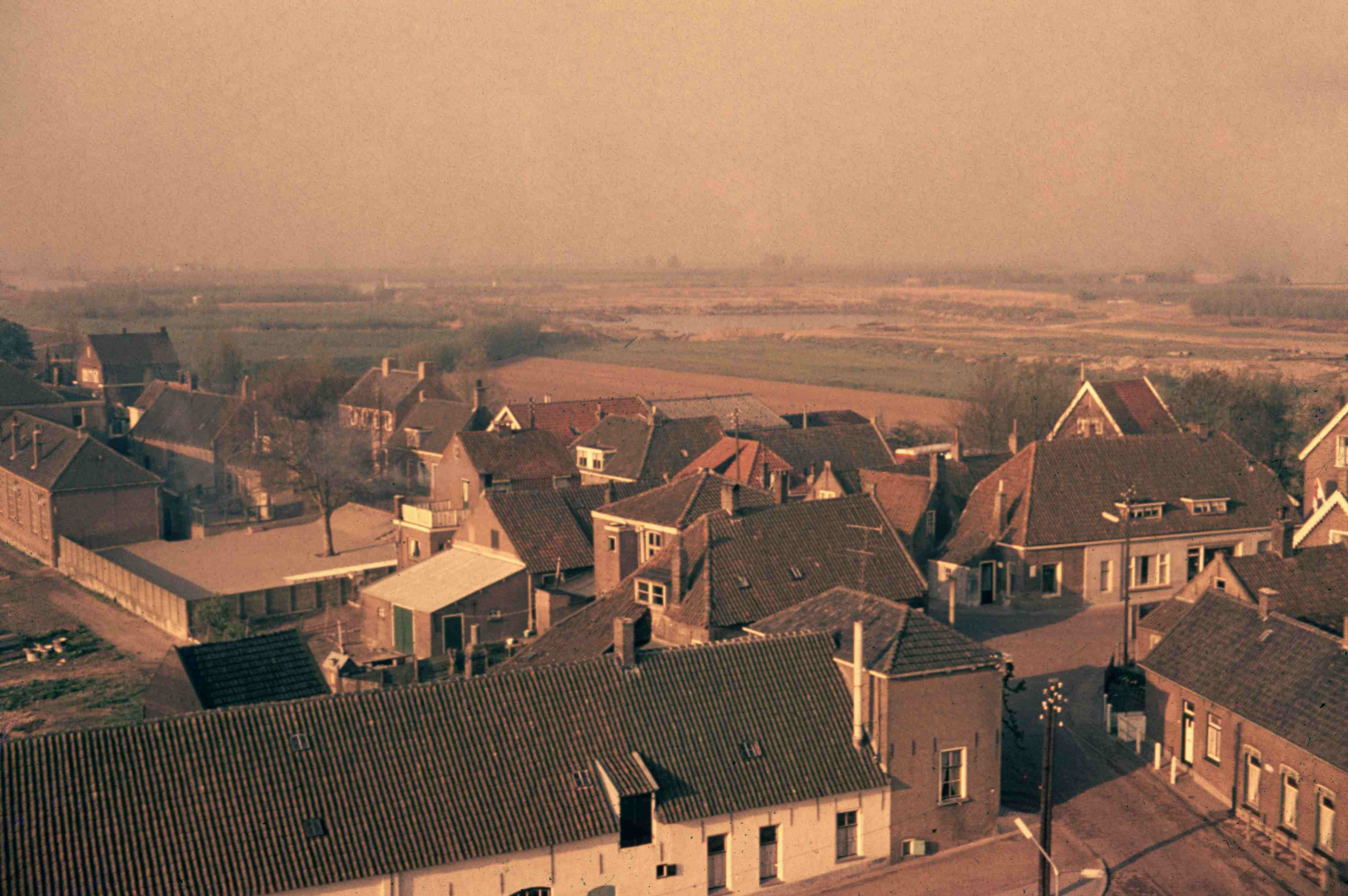 - Rechtsonder de hoek Dorpsstraat - Molenweg in Heerjansdam, gezien naar het zuidwesten.