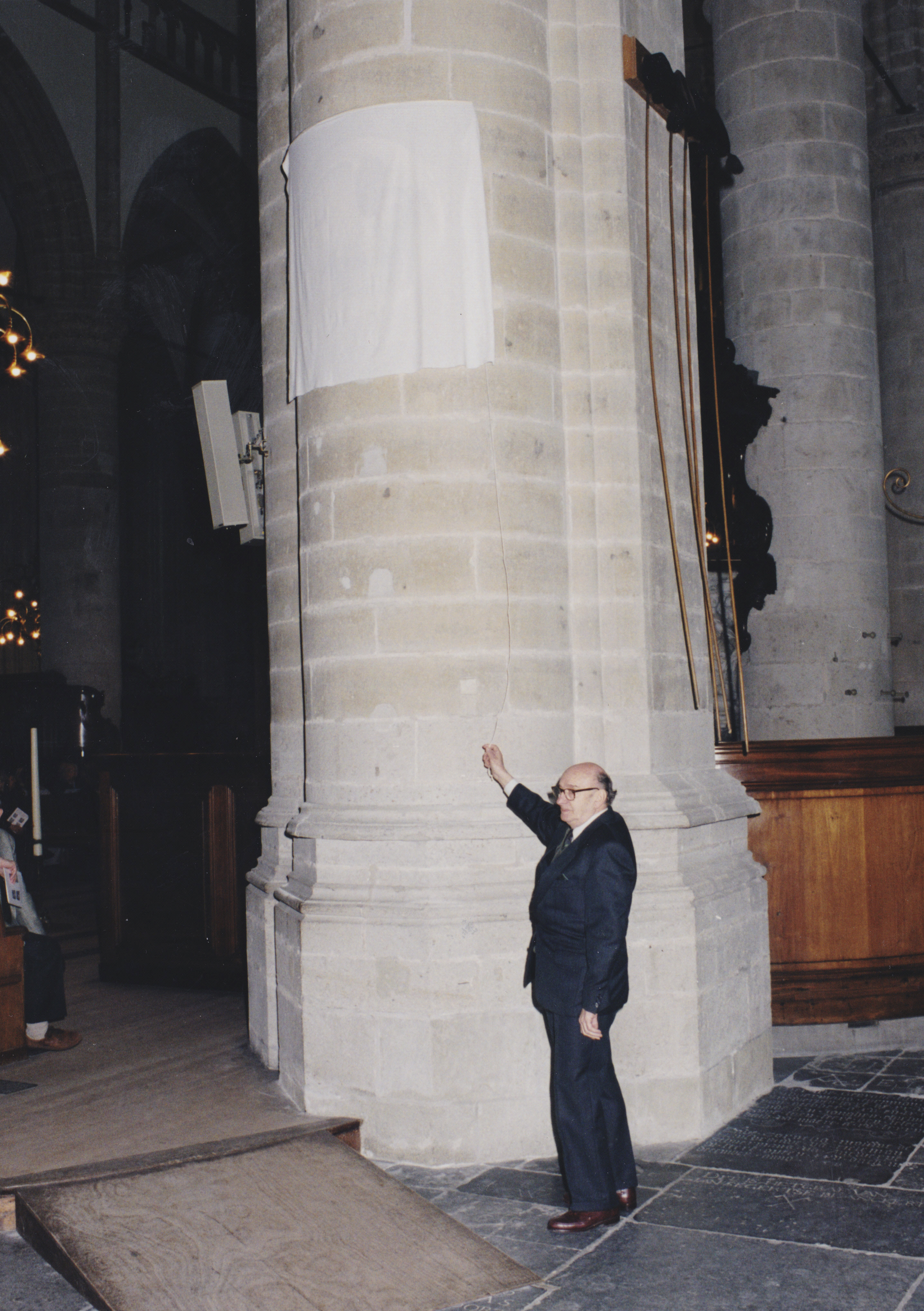 Onthulling van afbeeldingen van evangelisten op de vier kolommen onder de vieringtoren …