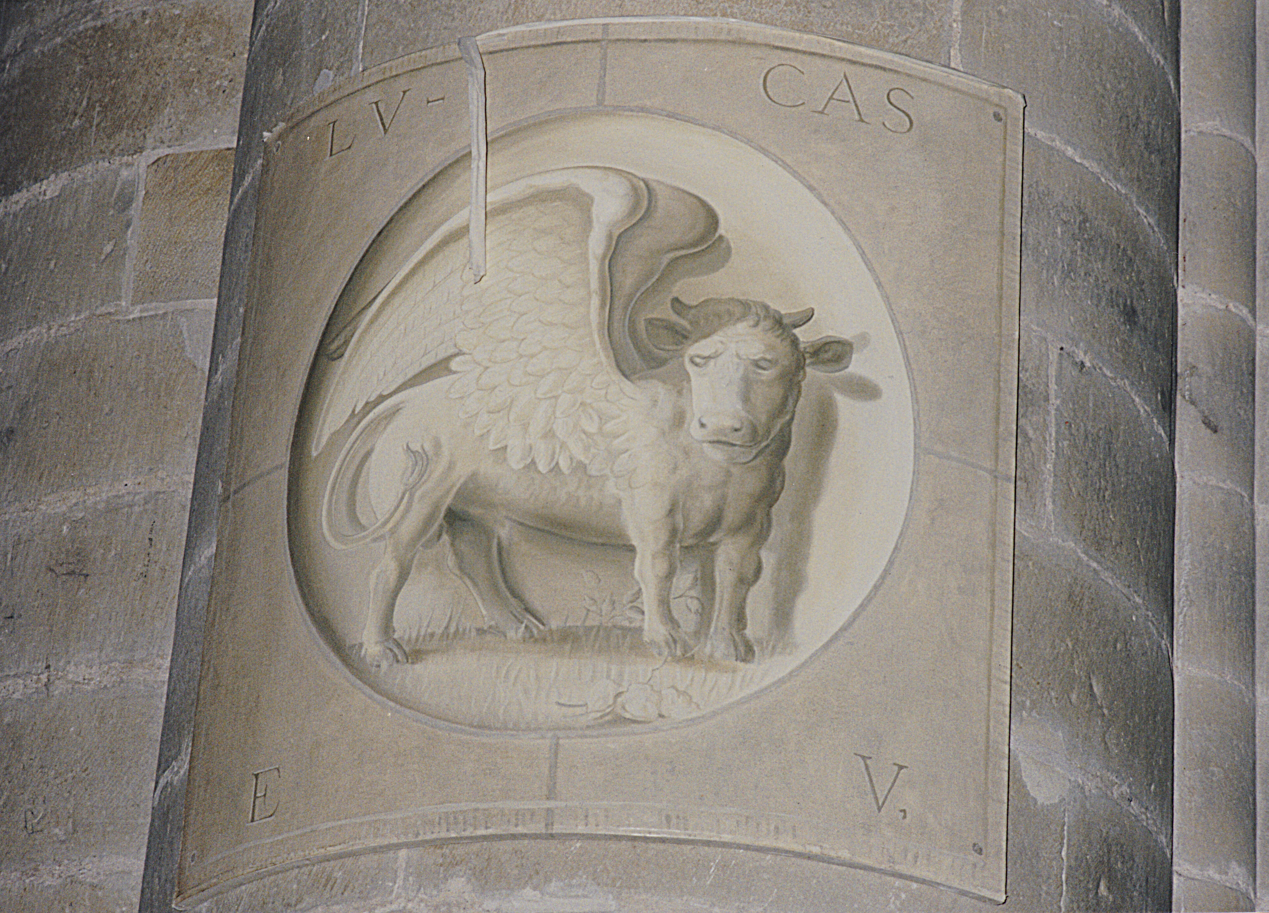 - Op ieder van de vier kolommen is een afbeelding van een evangelist aangebracht: Markus afgebeeld als een leeuw; Mattheus als een mens; Lucas als een os en Johannes als een adelaar.