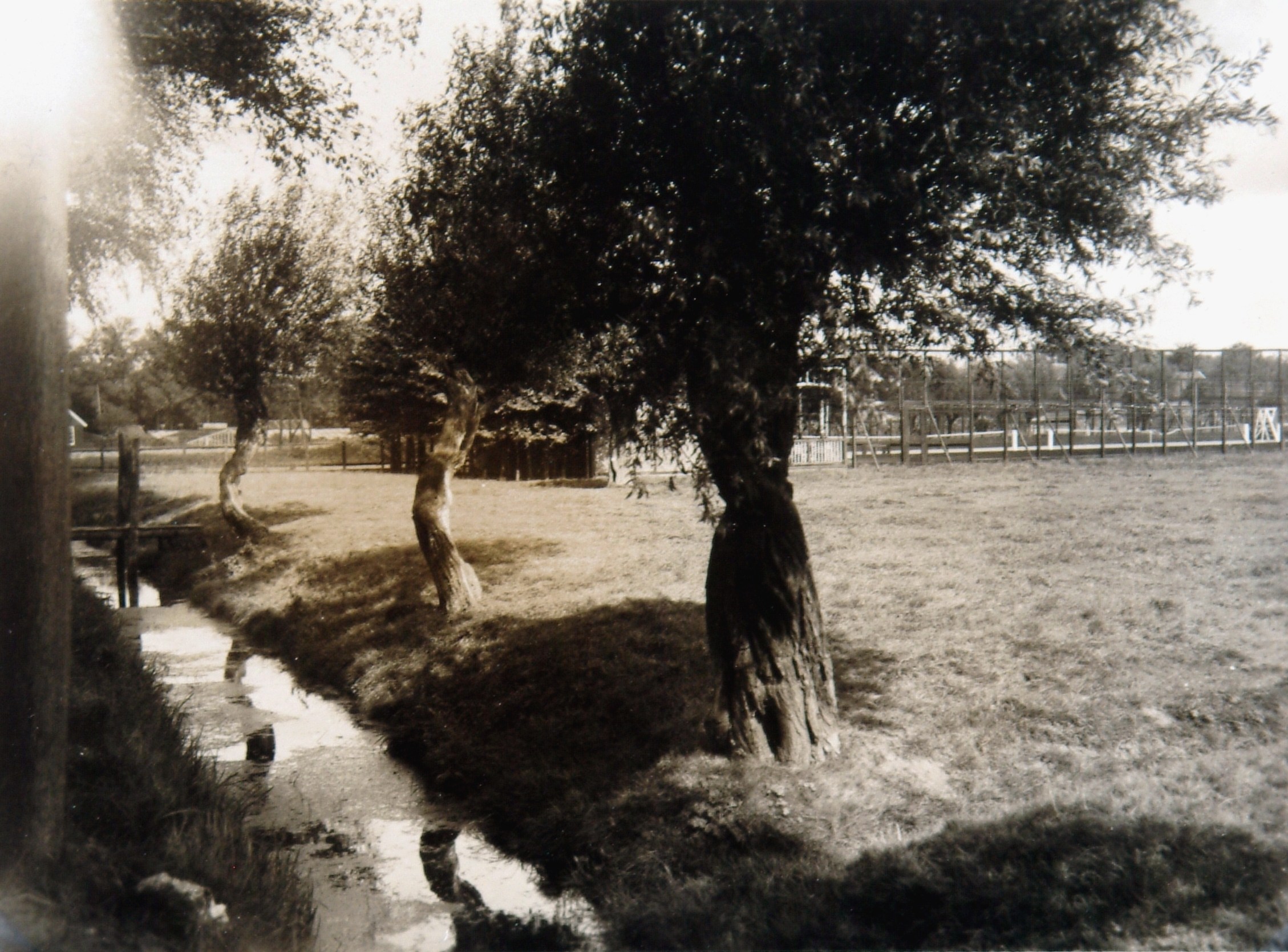 Gezicht vanaf de Achterweg naar het noorden. Rechts op de achtergrond de tennisbanen destijds gelegen even over de overweg.