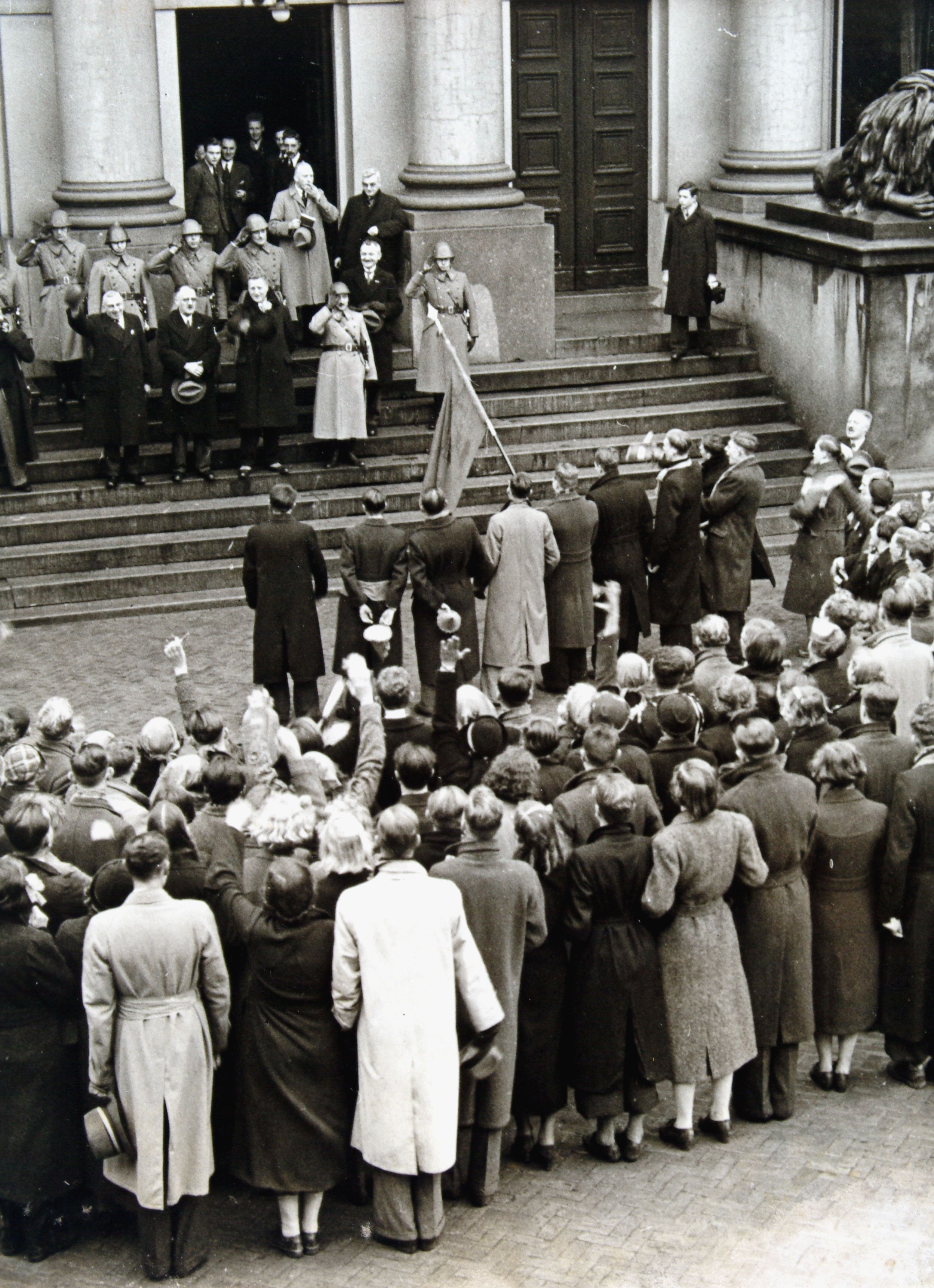 - H.B.S.'ers zingen het Wilhelmus voor het stadhuis bij de geboorte van prinses Beatrix.