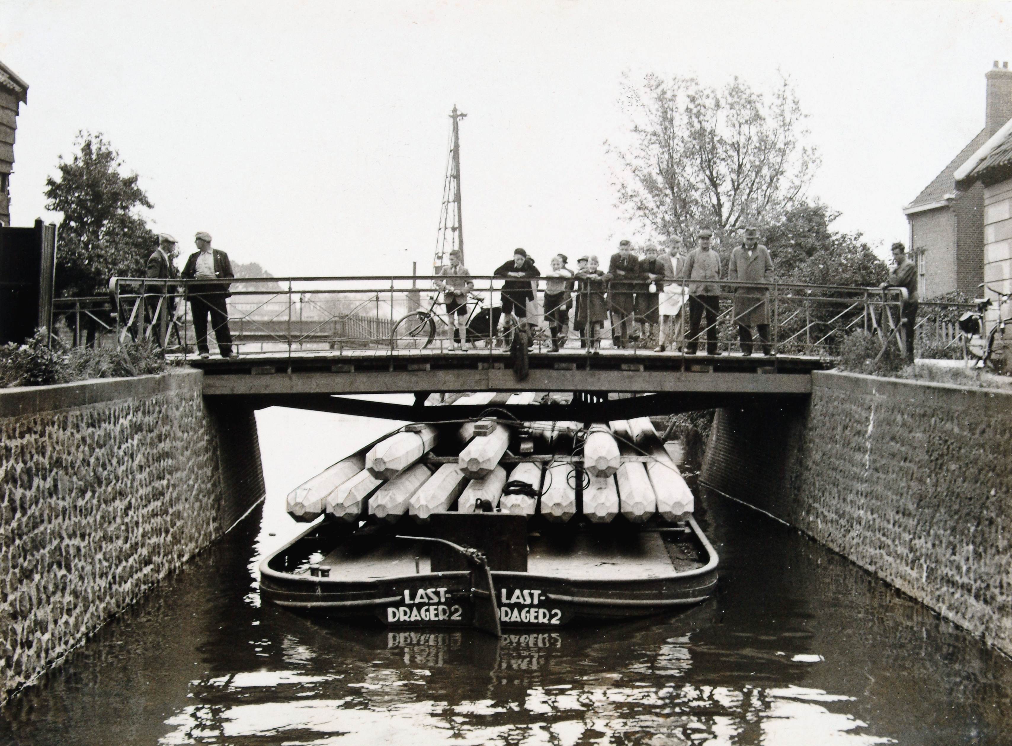 - Een zolderschuit met betonpalen voor de fundering van het viaduct van de oprit van de verkeersbrug over de Oude Maas is klemgevaren onder de Papegatsbrug.