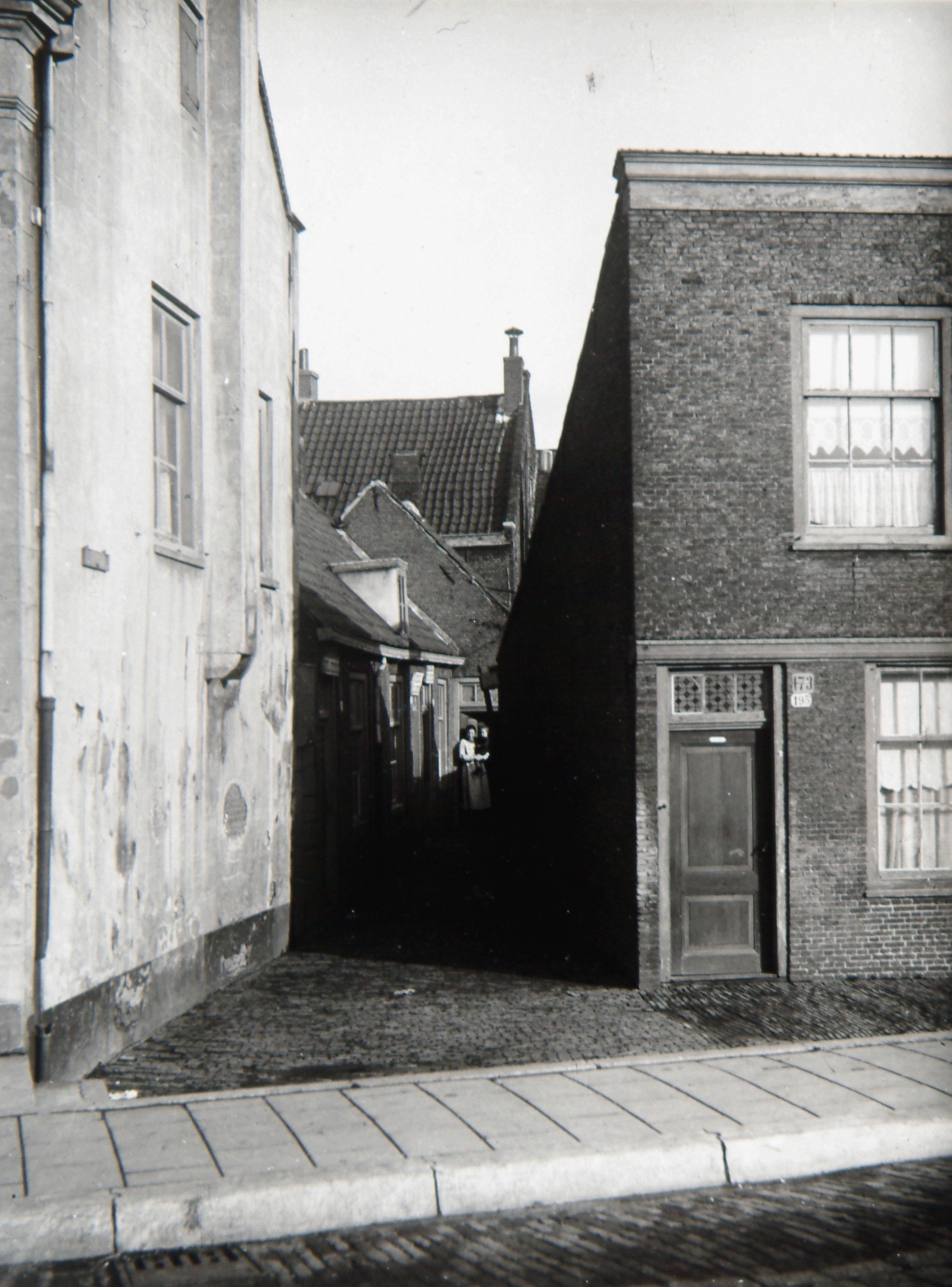 De voormalige Spuigang naast huisnummer 195 op de Vest. De Spuigang stond in verbinding …