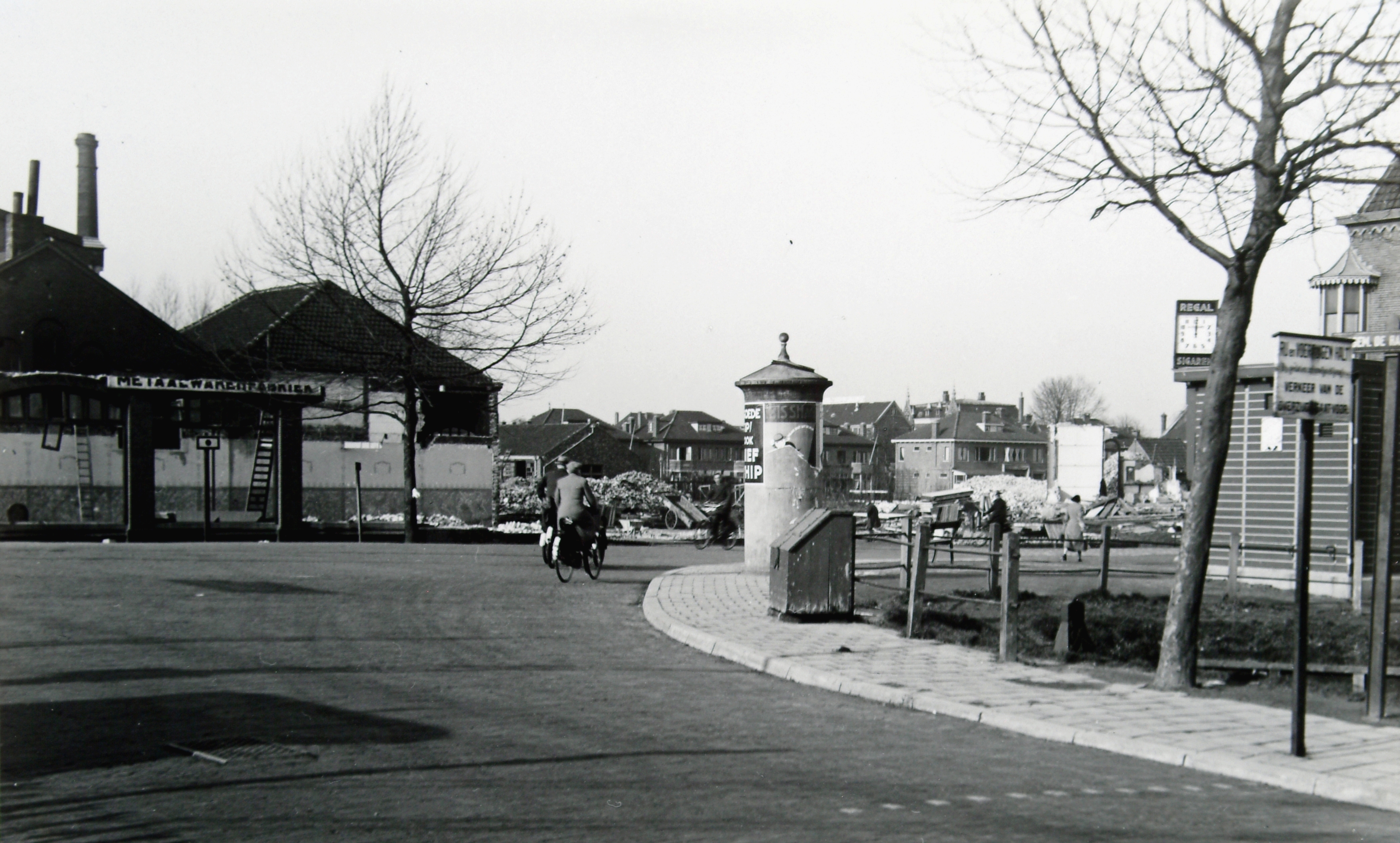 - Hoek Burgemeester de Raadtsingel/Spuiweg. De oude fabriek van Lips is afgebroken.
