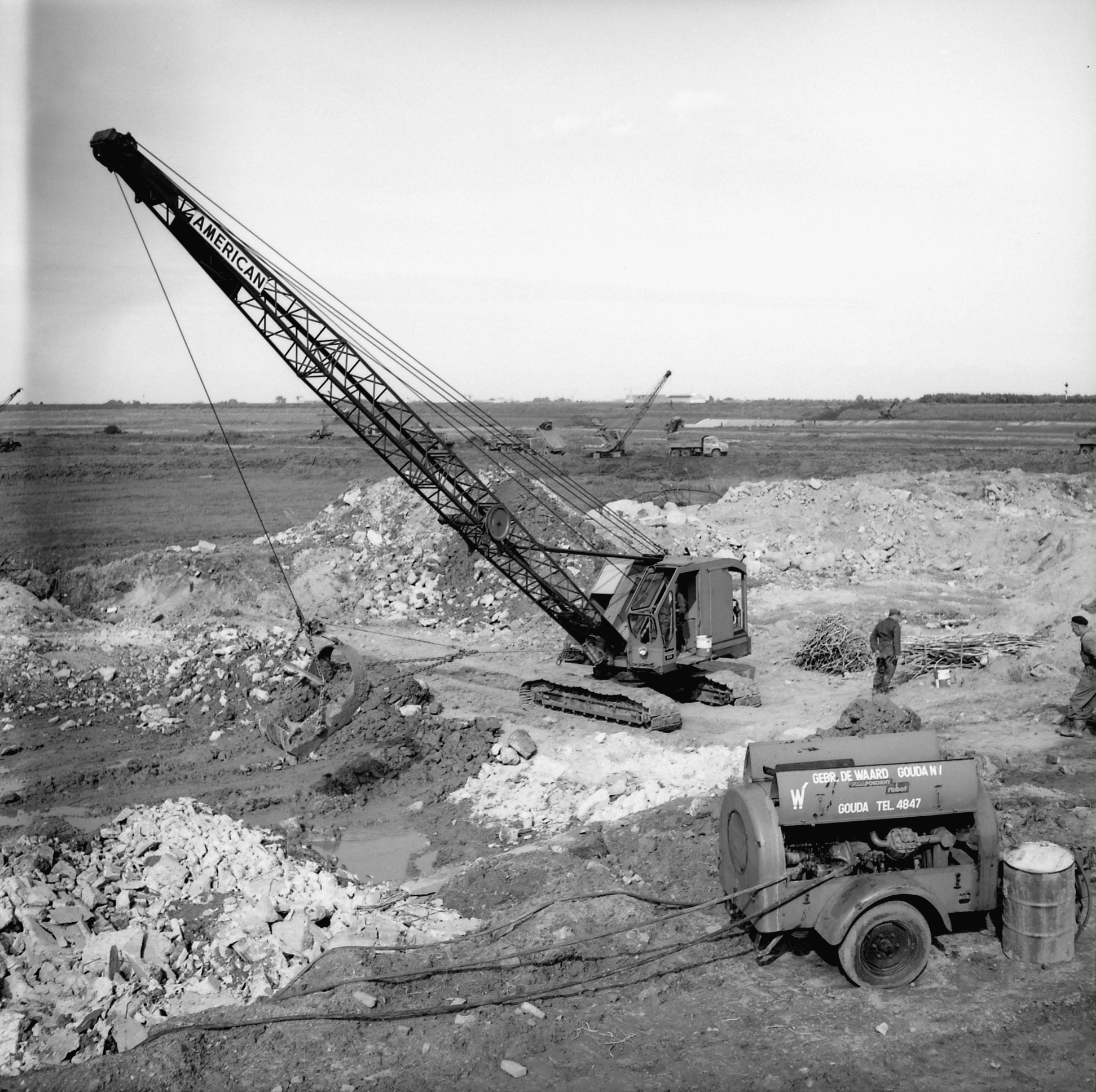 - arbeiders / werklieden hijskranen polderlandschappen / polders