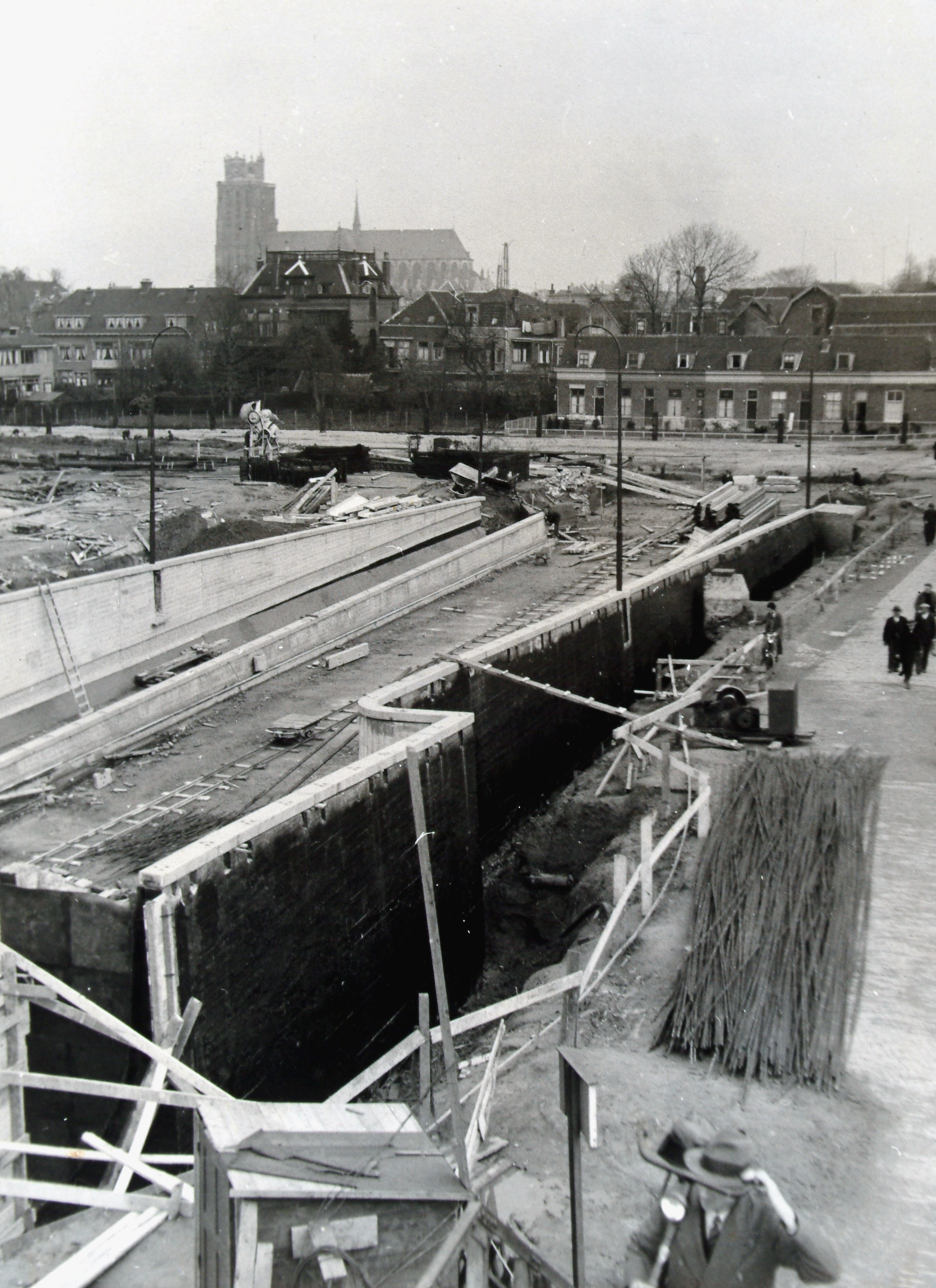 De aanleg van de Krispijntunnel. Dwars op de tunnelweg loopt de Kilwijkstraat.